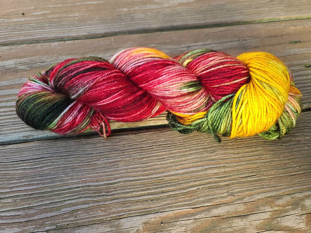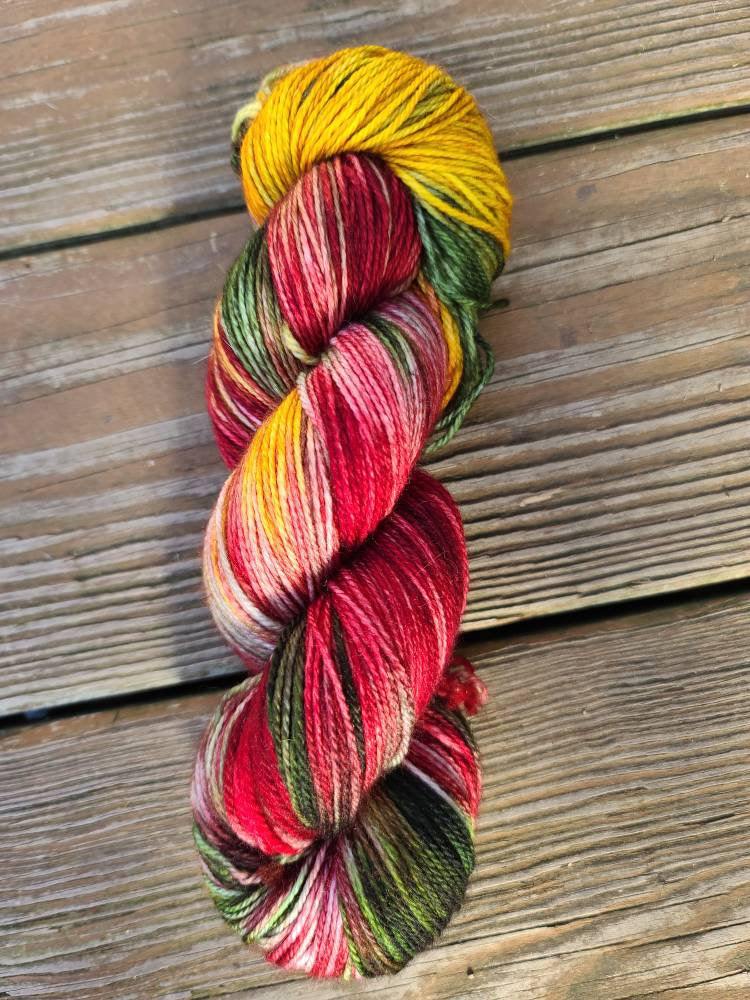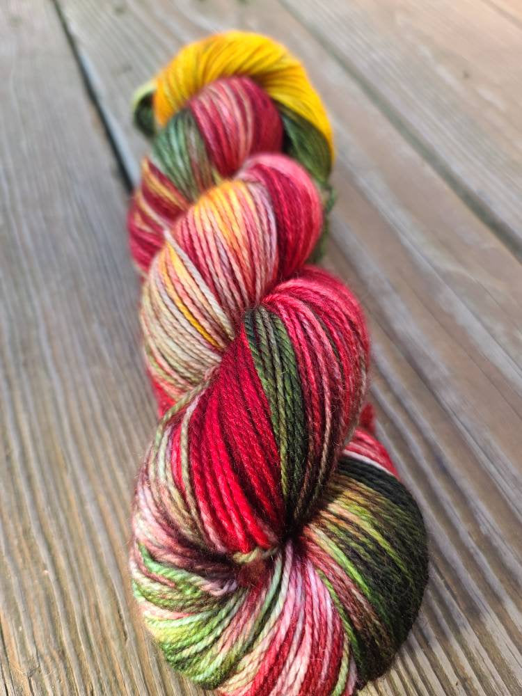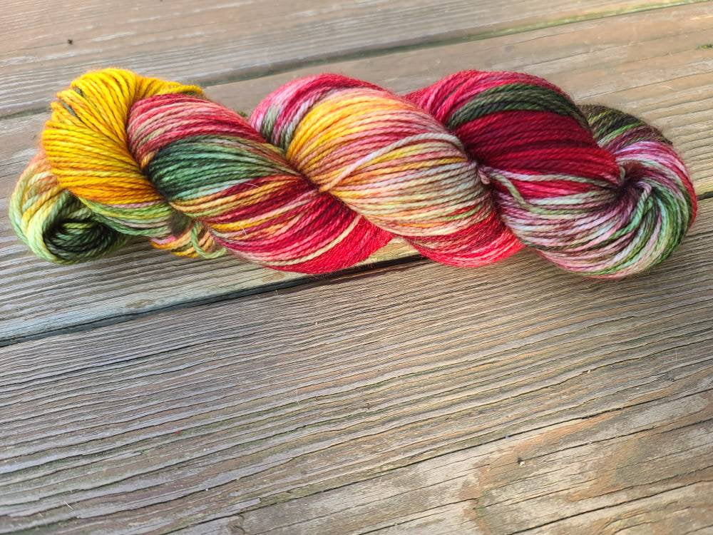 Skeins are dyed to order. There may be slight differences from skein to skein. If you are knitting with more than 1 skein, it is suggested to alternate between skeins to prevent any color pooling. Colors depicted in the pictures are as best represented as possible, however colors can vary slightly from monitor to monitor. All Woolen Women fiber is died with high quality acid dyes. Although adequate washing of the fiber is done prior to reaching your knitting needles- please take caution when first washing fiber or finished projects, as there is a chance bleeding may occur. Is is suggested to wash in a wool wash or a very mild detergent. Lay finished projects flat to dry. If you have any questions or concerns- I am happy to address them so you are nothing but excited about your purchase!