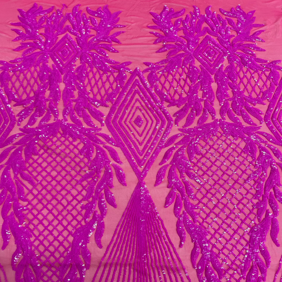 This beautiful and elegant Alpica Sequins Lace Fabric is truly one of a kind. Crafted with a luxurious four-way stretch nylon mesh backing, it features a stunning sequin design that adds a touch of glamour to any project. This fabric is sold by the yard, and if more than one yard is purchased, you will receive your fabric in a continuous piece. For example, if two yards are ordered, you will receive a piece measuring 60" x 72".