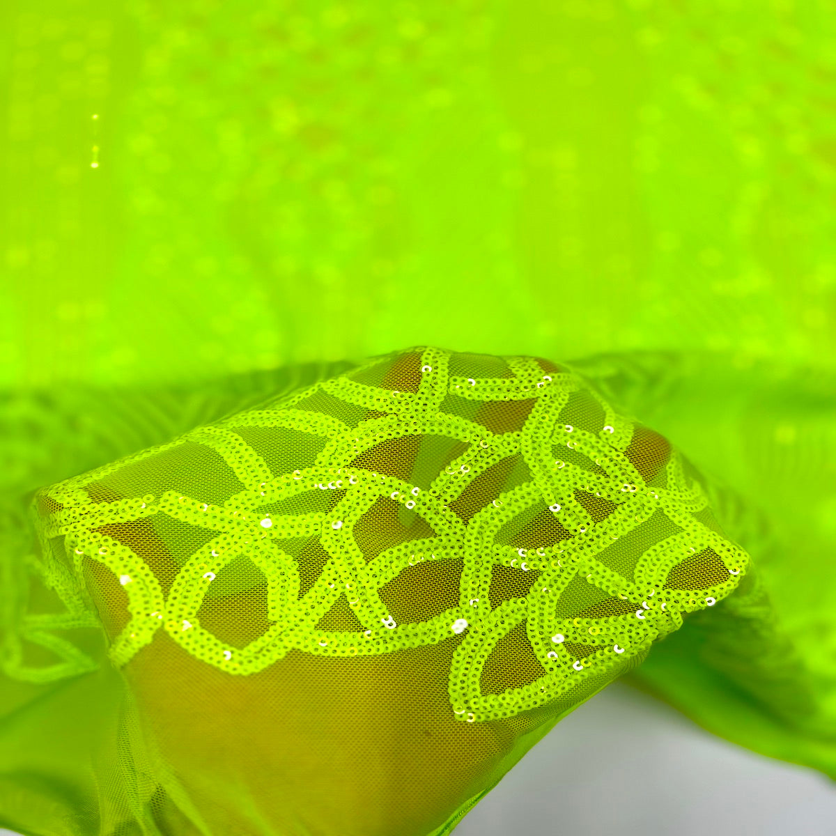 Discover the elegance of our stretch sequins lace fabric, designed to elevate your creations. Each piece is backed with a luxurious four-way stretch nylon mesh, ensuring comfort and flexibility, while a stunning sequin design adorns the entire fabric for that extra sparkle. Sold by the yard, you can enjoy the convenience of receiving your fabric in a continuous piece when ordering multiple yards. For example, ordering two yards will yield a generous piece measuring 60" x 72".