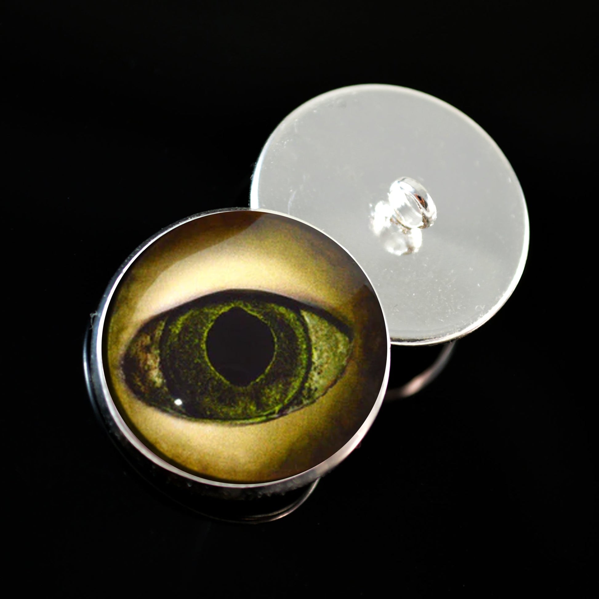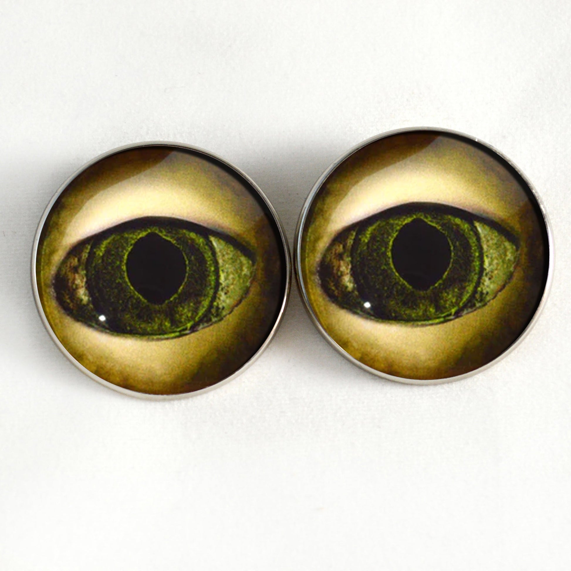 Make an impact on your project with these handmade glass eyes that depict realistic, lagoon creature green irises straight from the depths of the swamps.