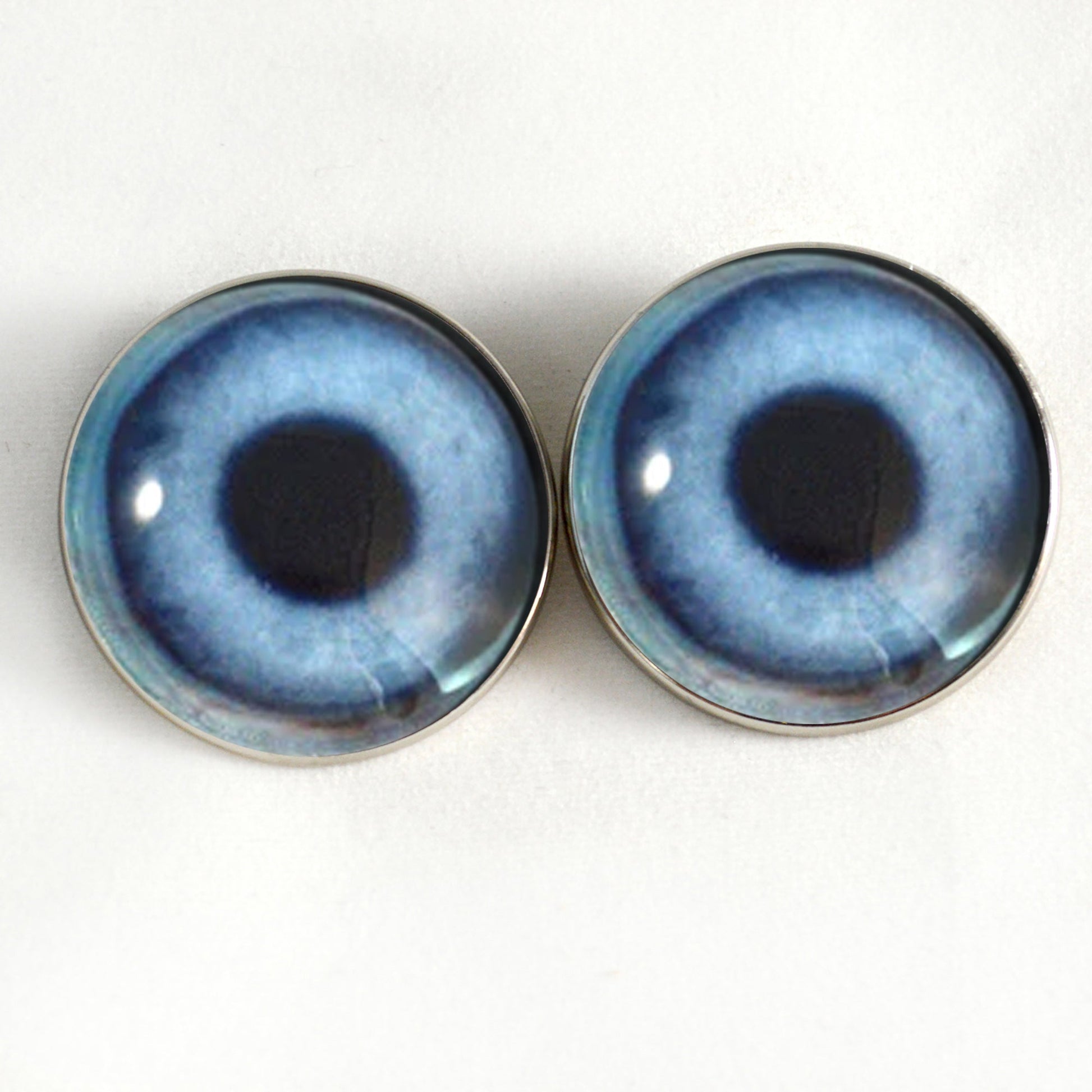 These sew in realistic, large blue dog glass eyes engage onlookers with their finely detailed iris design. These eyes are perfectly suited for soft sculpture doll making.