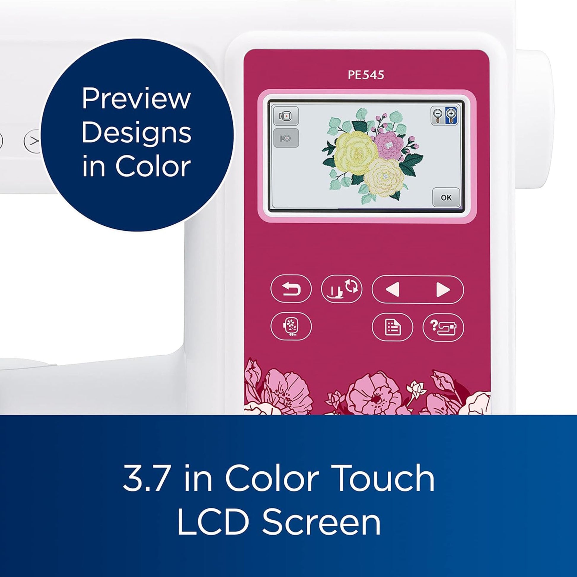 This machine features a vibrant 3.7-inch color LCD touchscreen that crafters will find useful. This high-resolution display lets you preview your embroidery designs in full color before stitching, ensuring that every detail aligns perfectly with your creative vision. The intuitive interface makes it easy to select, edit, and customize designs on the screen, allowing you to adjust patterns and add personalized touches without needing a computer. For quilters looking to bring intricate designs to life with precision and ease, the PE545's LCD screen serves as a powerful tool that enhances both creativity and efficiency in every project.