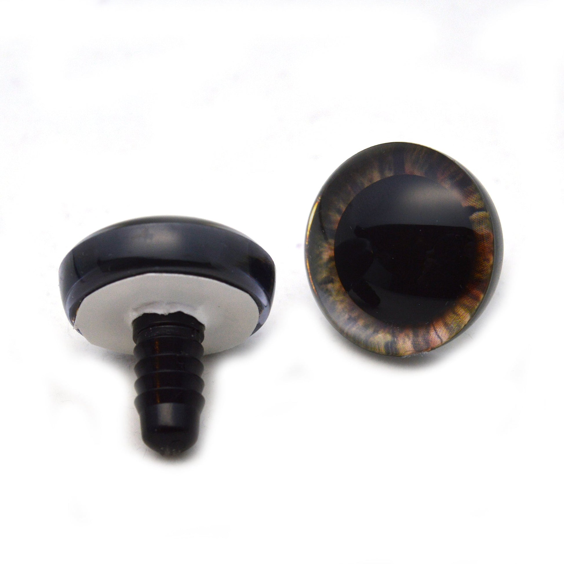 These light brown, steampunk-inspired plastic safety eyes are suitable for handmade doll and craft making such as crochet amigurumi or stuffed animal soft sculptures.