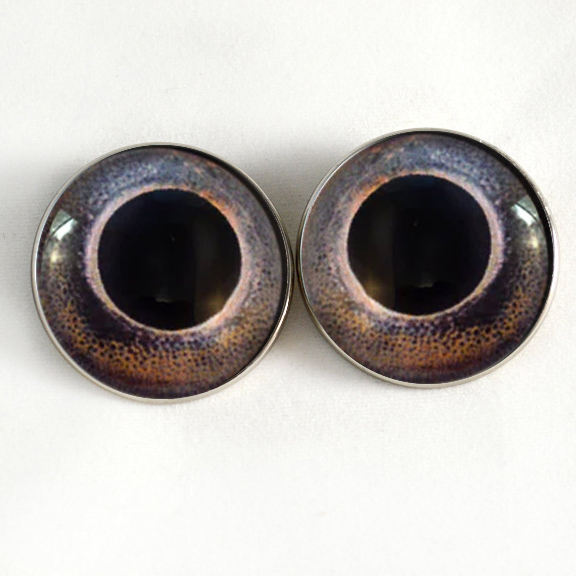 Pick or size of 10mm, 16mm, 25mm, or 30mm for a pair of sew on glass button eyes. These handmade eyes add complex life to your creations, with their life-like animal imitation.