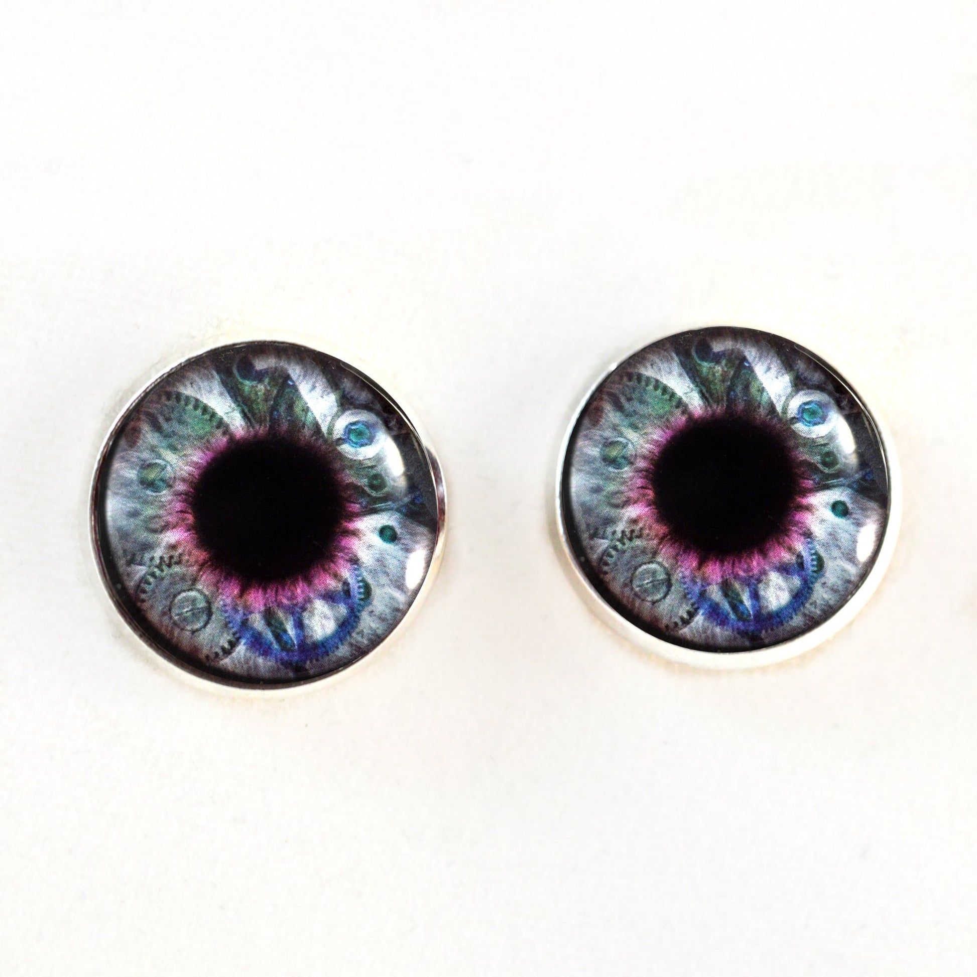 Clockwork Blue Purple Steampunk Sew-On Button Glass Eyes