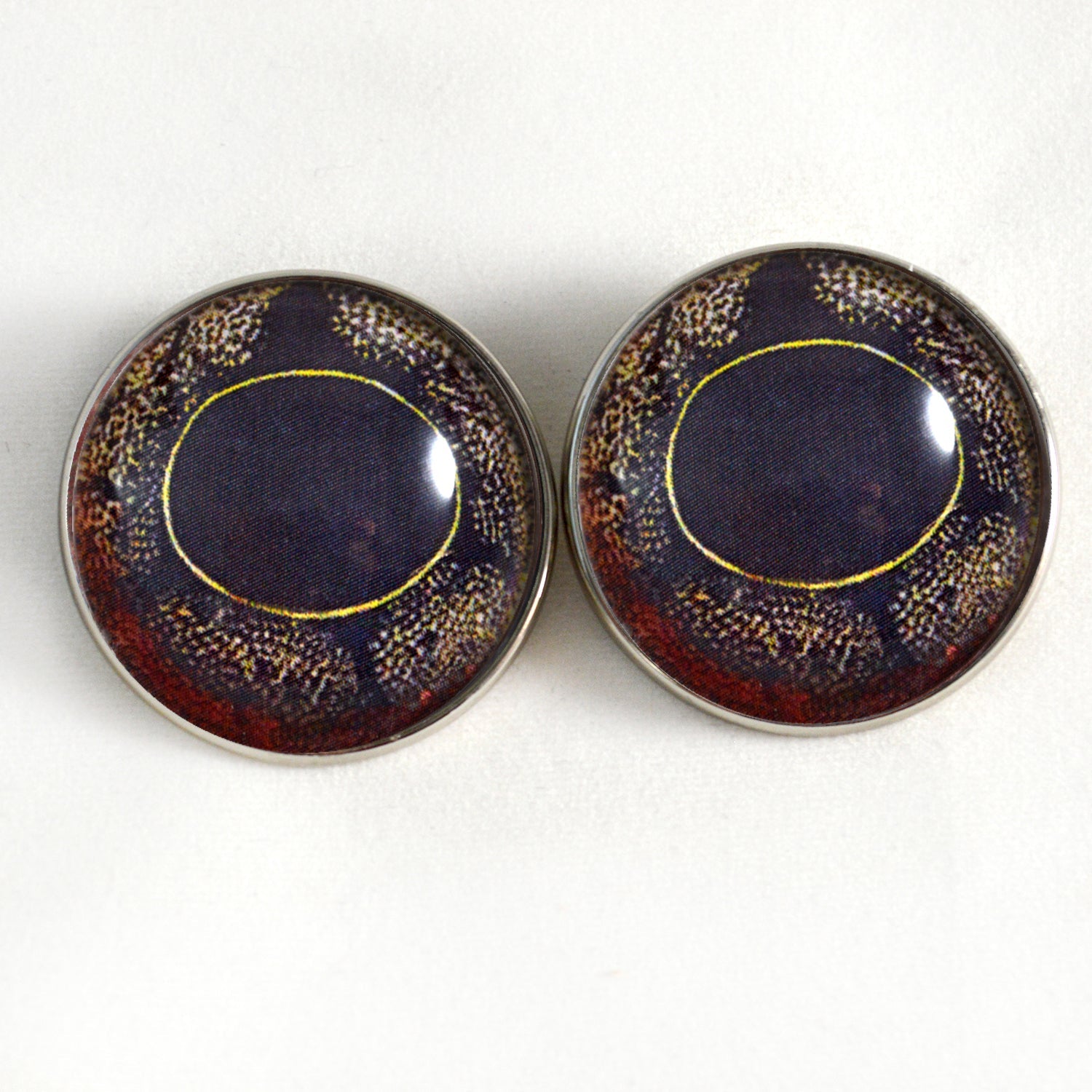 These glass eye cabochons are set in silver toned metal button bezels with sew-on loops on their backs. These sew-on glass eyes are perfect for soft sculptures, plushies, stuffed animals, and as buttons for unique clothing.