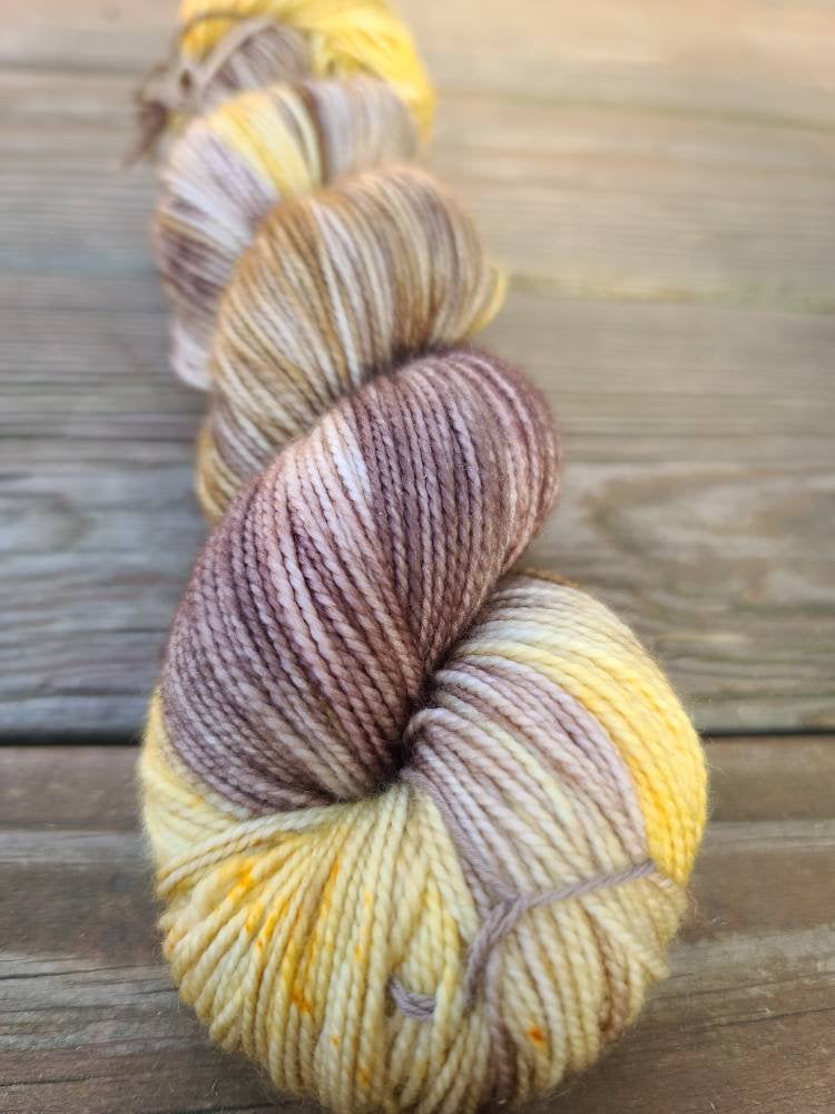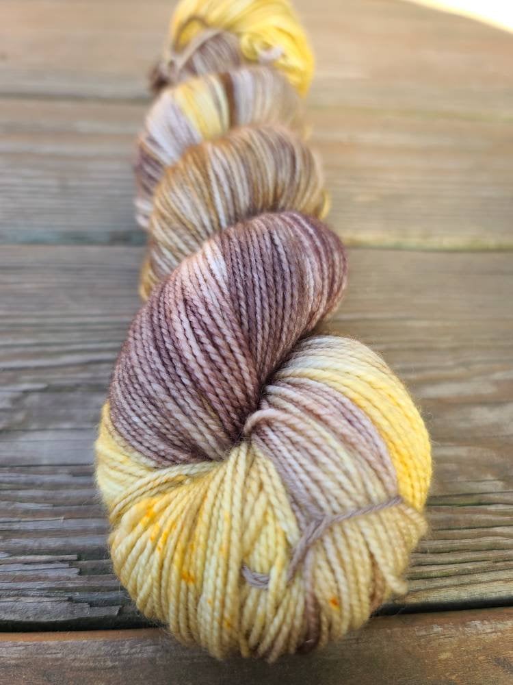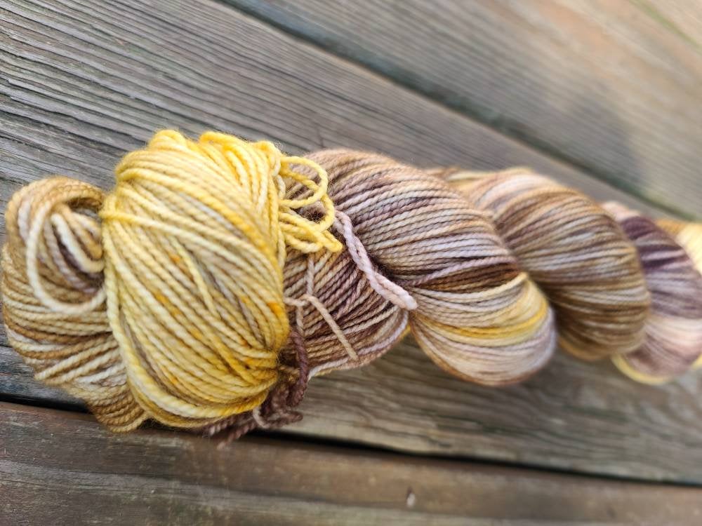 Skeins are dyed to order. There may be slight differences from skein to skein. If you are knitting with more than 1 skein, it is suggested to alternate between skeins to prevent any color pooling. Colors depicted in the pictures are as best represented as possible, however colors can vary slightly from monitor to monitor. All Woolen Women fiber is died with high quality acid dyes. Although adequate washing of the fiber is done prior to reaching your knitting needles- please take caution when first washing fiber or finished projects, as there is a chance bleeding may occur. Is is suggested to wash in a wool wash or a very mild detergent. Lay finished projects flat to dry. If you have any questions or concerns- I am happy to address them so you are nothing but excited about your purchase!