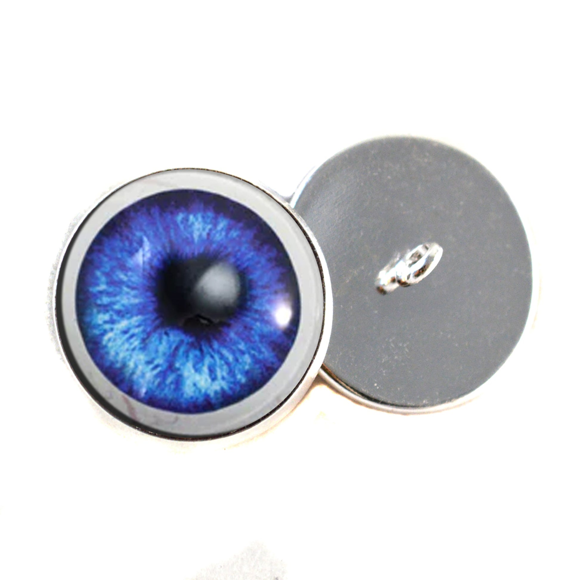 These glass eyes are buttons with loops on the back of their silver-colored metal settings. This pair of glass eyes is perfect for creating your stuffed or crochet animal creature or soft sculpture, or for use in creative jewelry making.