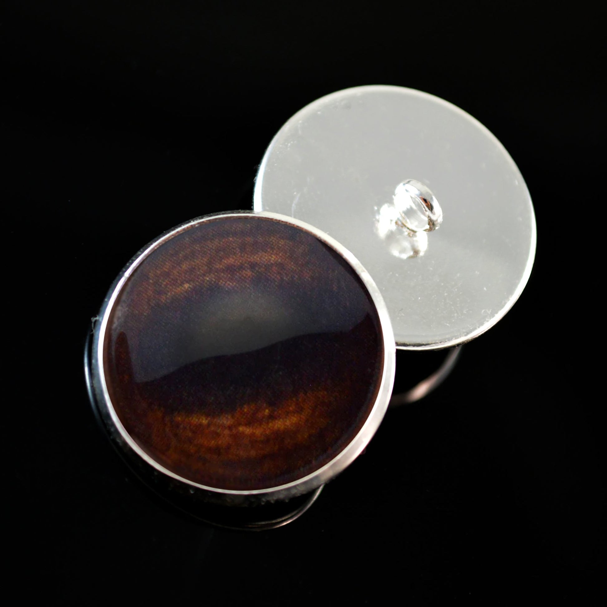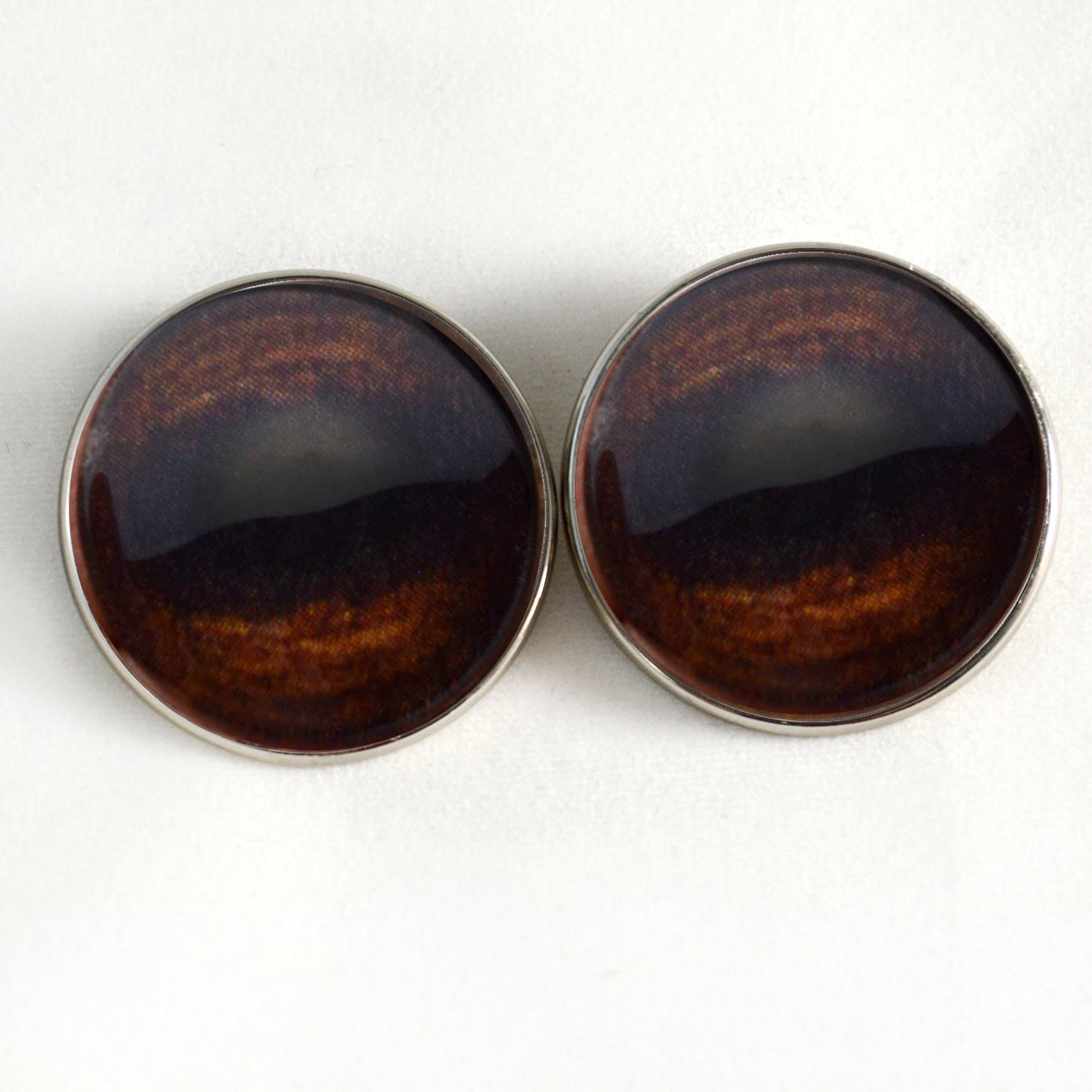 These life-like sew on button glass eyes depict intricate, dark brown horse eyes.