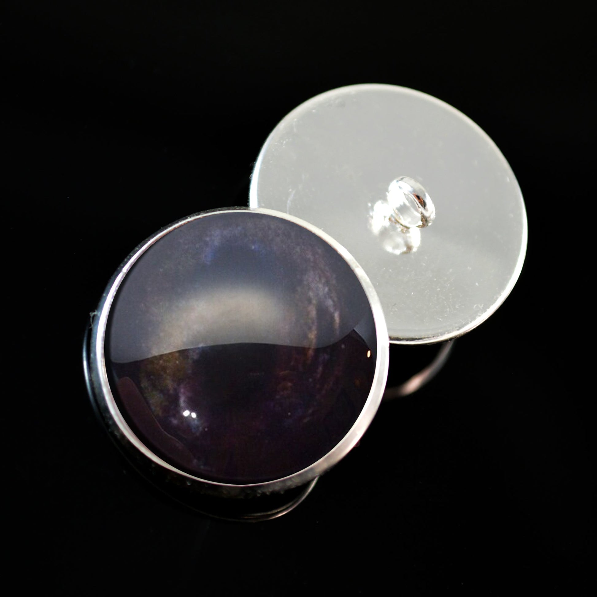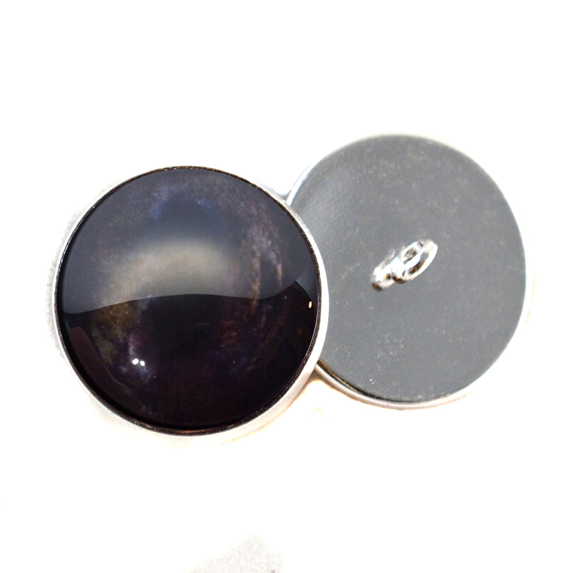 These button-backed cabochons are made with high quality card stock print-out of the original digital designs, and attached to a glass cabochon dome with diamond glaze resin and attached to the silver toned button setting.