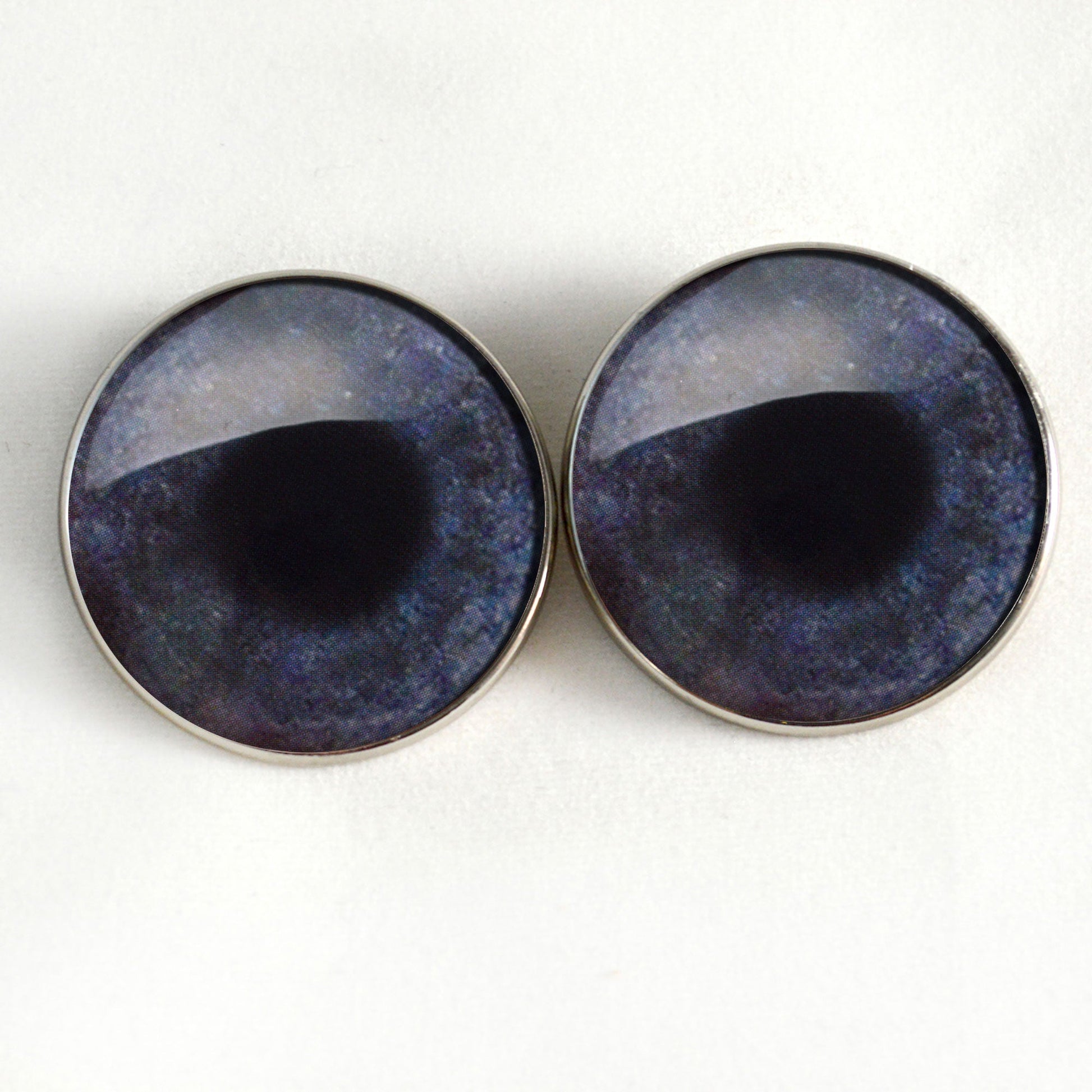 These glass eyes are buttons with a loops on the back of their silver colored metal settings. This pair of glass eyes is perfect for creating your stuffed or crochet animal creature or soft sculpture, or for use in creative jewelry making.