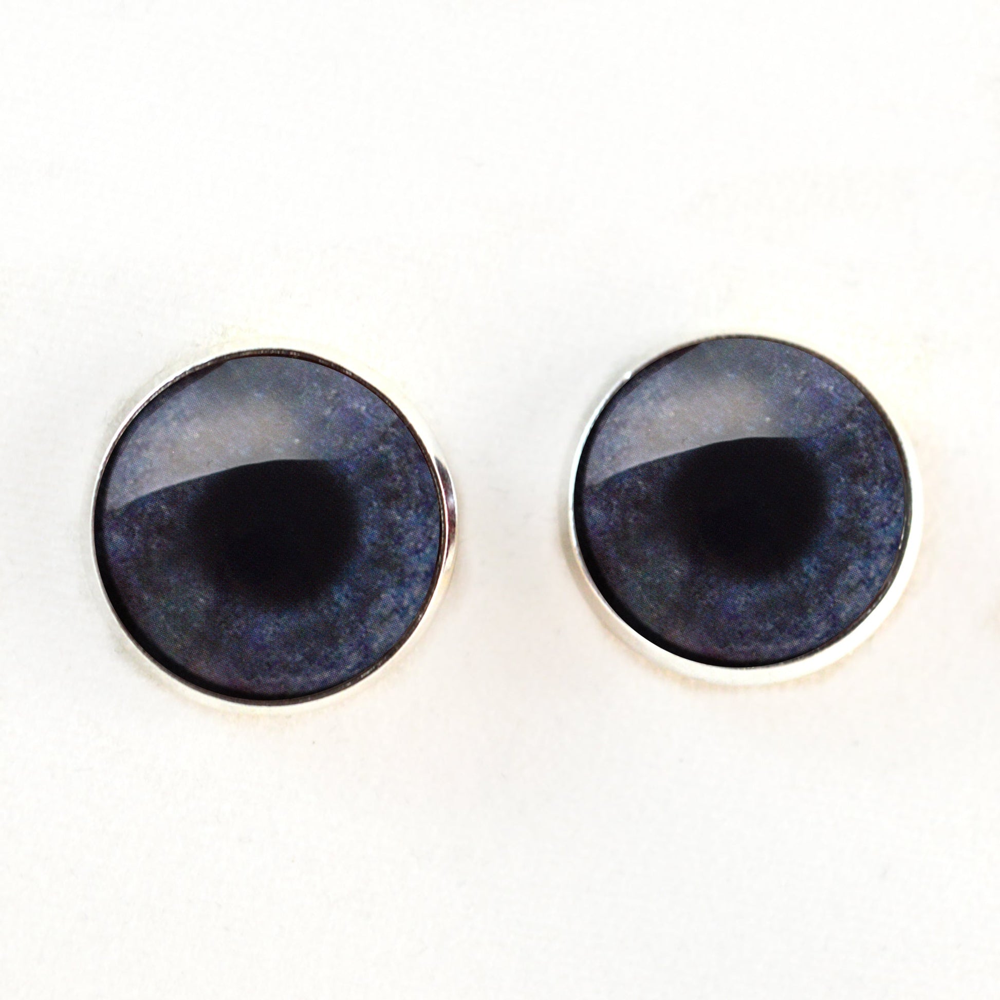 These detailed, dark bluish gray and black ostrich, fowl inspired glass eyes add complex life to your creations, with their life-like animal imitation. These eyes are perfectly suited for soft sculpture doll making.