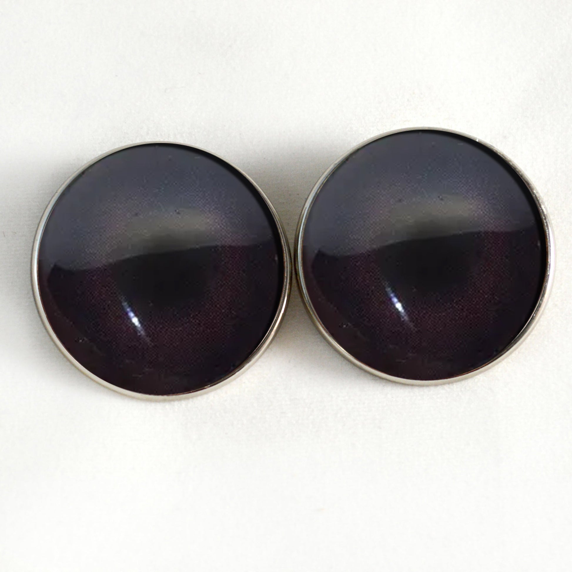These glass eyes are buttons with a loops on the back of their silver colored metal settings. This pair of glass eyes is perfect for creating your stuffed or crochet animal creature or soft sculpture, or for use in creative jewelry making.