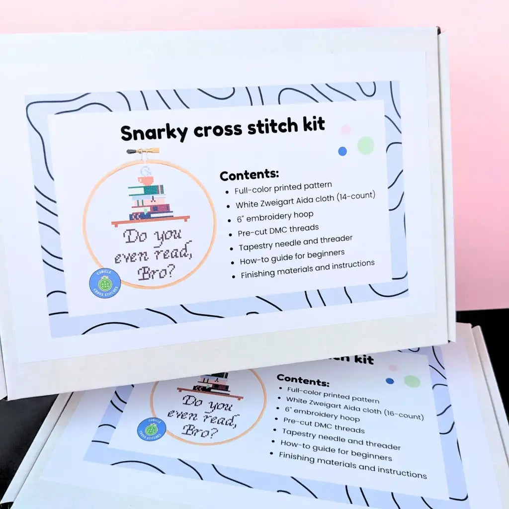 Do You Even Read, Bro? Snarky Bookworm Cross Stitch Kit by Room for Calm