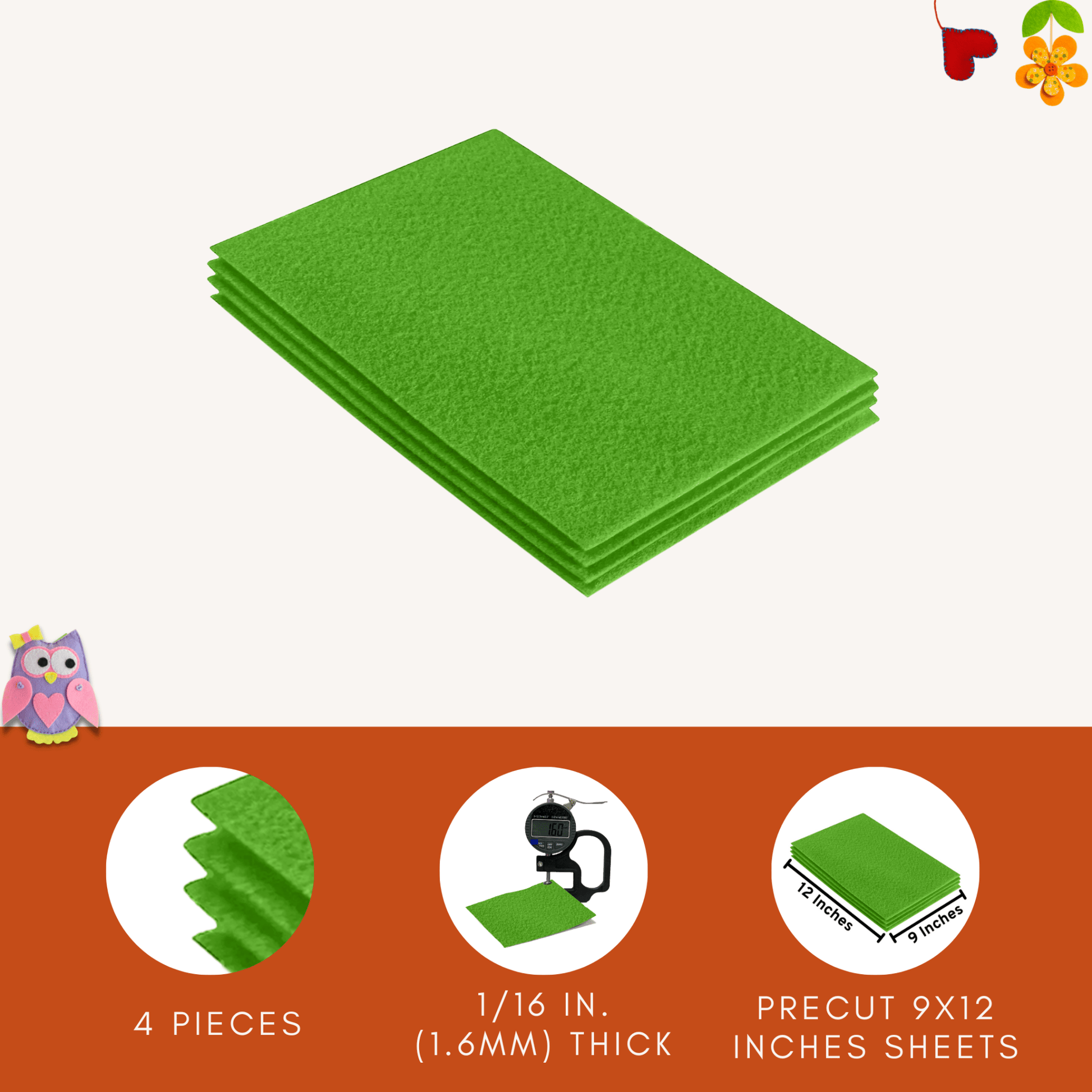 We know the quality of Felt Fabric is extremely important when crafting, especially if your little one is helping you with cutting, gluing and sewing felt! That's why we handpick our Felt for you to make sure you only get the softest felt that's easy to work with. Our Felt Fabric is made with 100% Acrylic craft felt. Acrylic’s performance is almost the same as that of wool but its elasticity is far better than the latter. Additionally, acrylic has excellent light resistance, giving you no problem when exposing it to the sun.