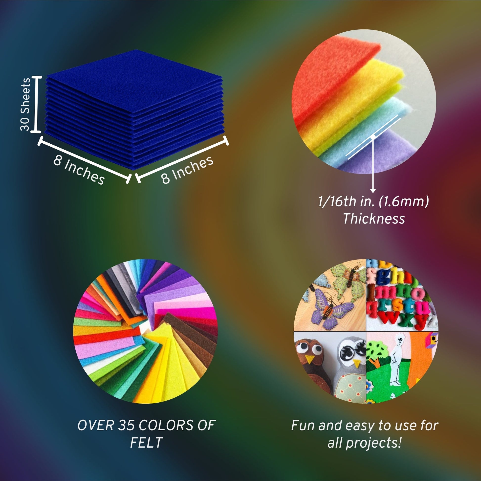 FabricLA Acrylic Felt Craft Sheet Packs – Royal Blue | Soft 100% Acrylic Felt Sheets for DIY & Crafts