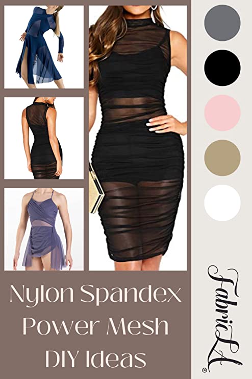 FabricLA Nylon Spandex Power Mesh - 60'' Inch Wide x 360" Inches Long Pre-Cut Fabric - Use Fabric for Sports Wear, Ballet, Workout Tights, Garments