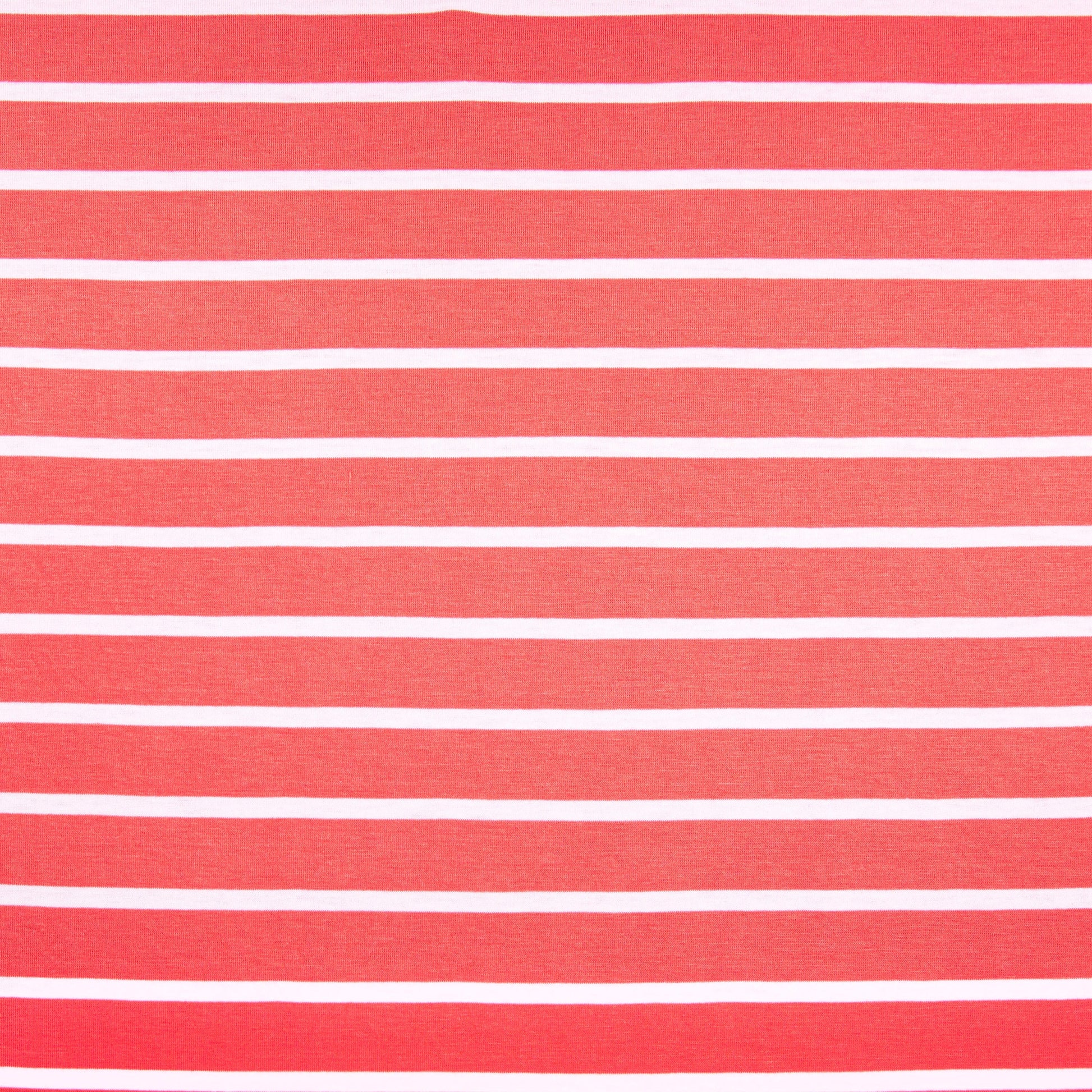 FabricLA Rayon Spandex Jersey Knit Fabric โ 58/60" Wide, 1.6mm Thick | 4-Way Stretch Striped Fabric for Apparel & Crafts (Coral & White)
