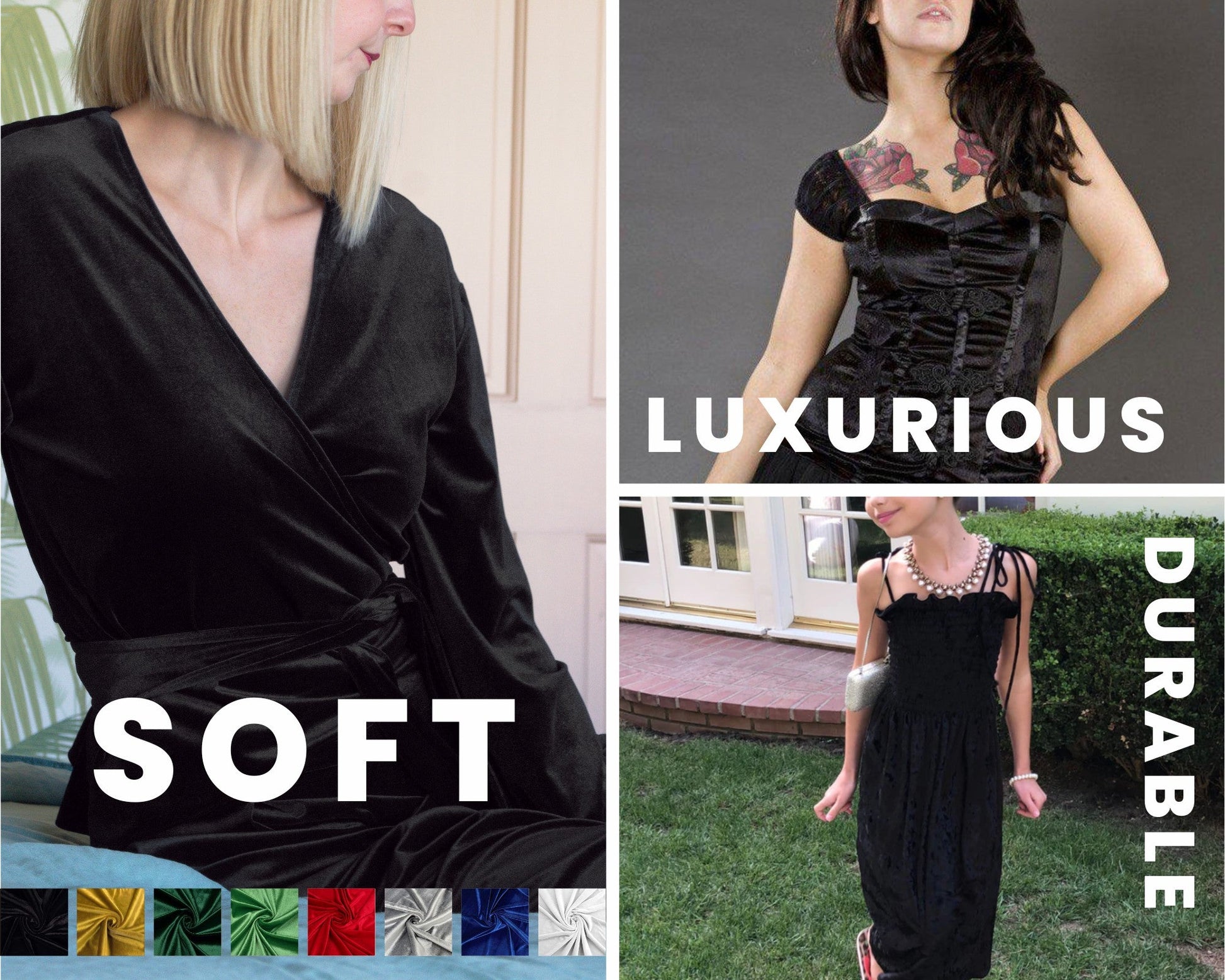 Stretch velvet is commonly used for dresses, dancewear, cosplay outfits, evening gowns, upholstery accents, accessories, and home décor projects due to its soft texture, sheen, and flexibility.
