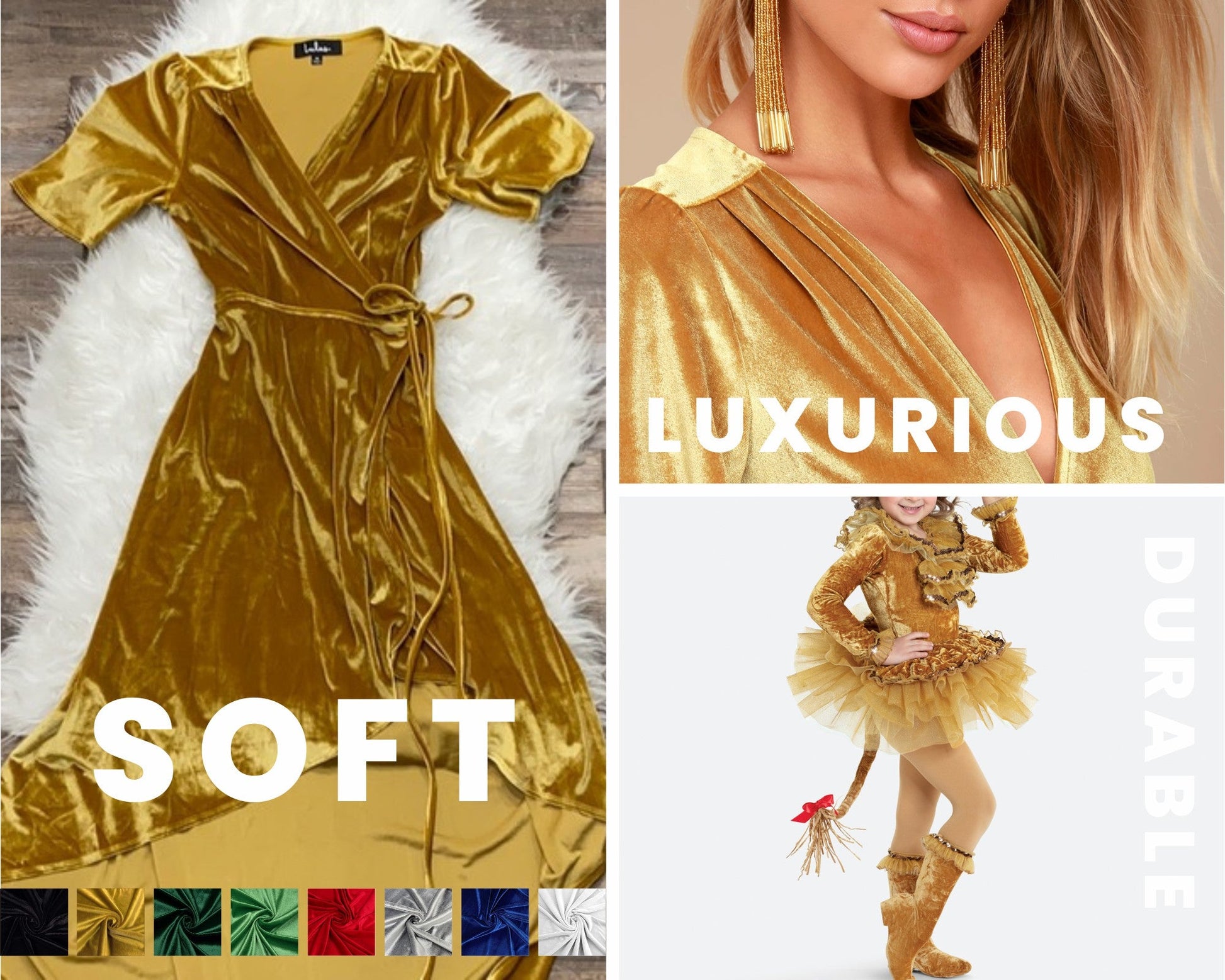 FabricLA Stretch Velvet Fabric by the Yard – Gold | 90% Polyester 10% Spandex | 280gsm | 58/60” Wide