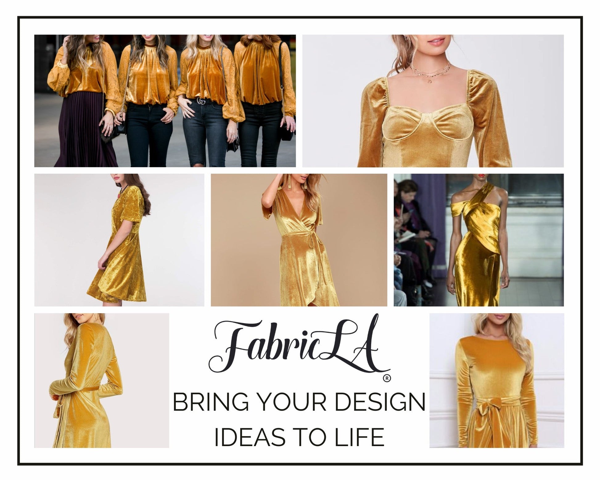 Add luxury and warmth to your creations with FabricLA’s premium Gold Stretch Velvet Fabric. Featuring a rich golden tone and silky soft pile, this fabric delivers a striking visual impact while offering 4-way stretch for flexibility and comfort. Its smooth drape and subtle sheen make it ideal for elegant apparel, event décor, and creative DIY projects.