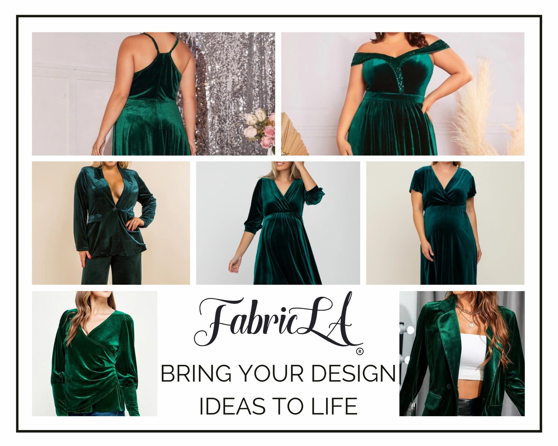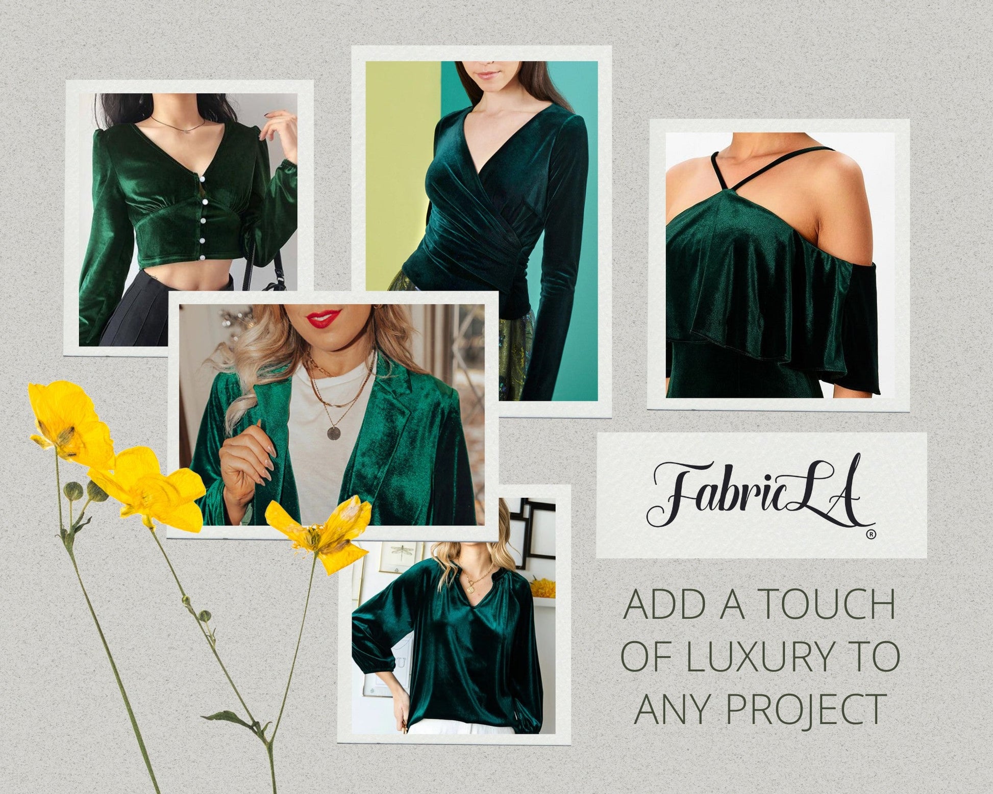 Bring depth and elegance to your projects with FabricLA’s luxurious Hunter Green Stretch Velvet Fabric. Featuring a rich jewel-tone finish, this plush velvet provides a soft hand, fluid drape, and 4-way stretch—making it a popular choice for fashion, costumes, décor, and premium craft applications.