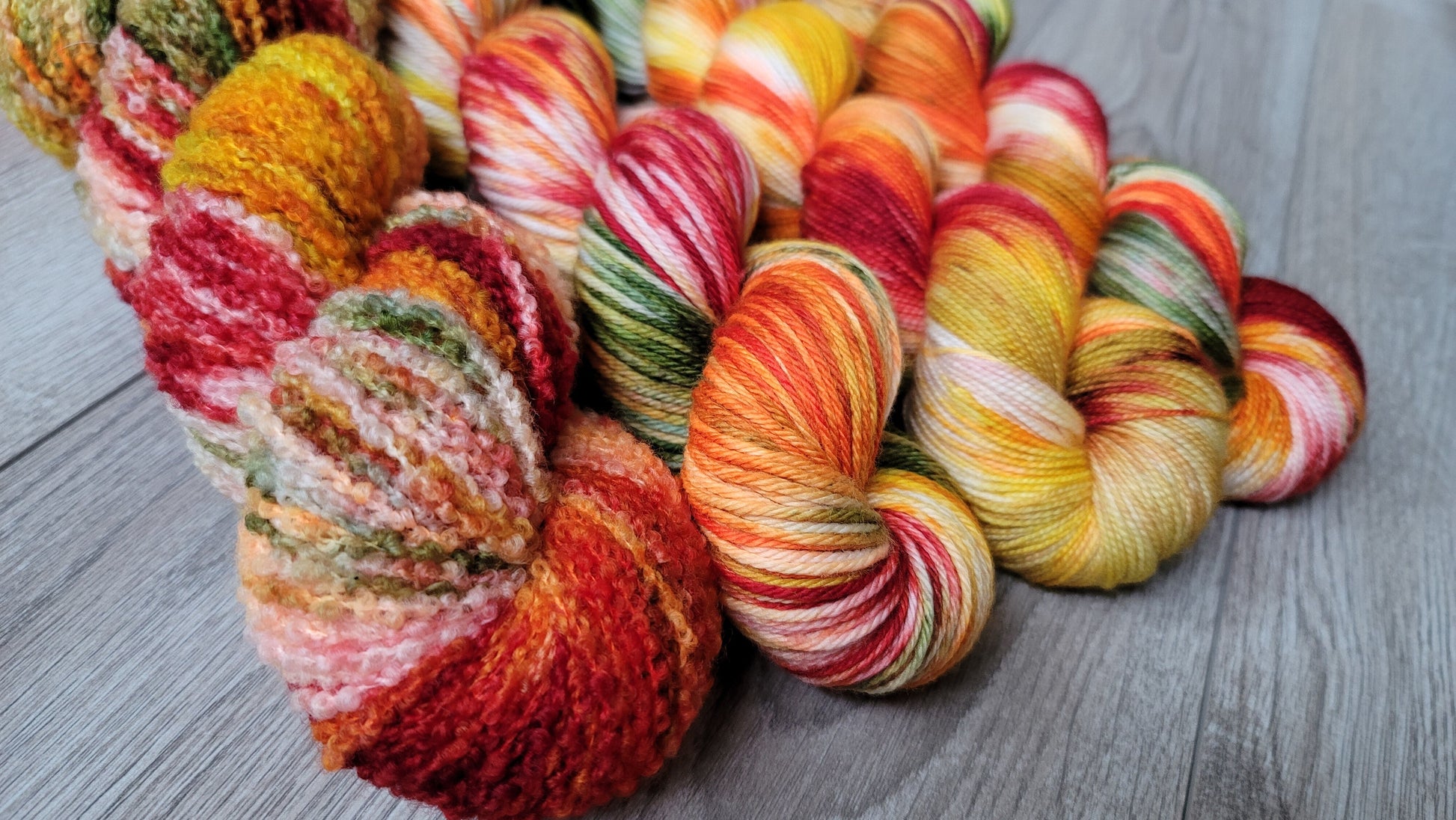 Skeins are dyed to order. There may be slight differences from skein to skein. If you are knitting with more than 1 skein, it is suggested to alternate between skeins to prevent any color pooling. Colors depicted in the pictures are as best represented as possible, however colors can vary slightly from monitor to monitor.