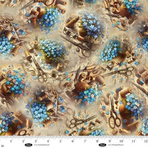 Forget Me Not Cream Cotton 44"/45" Fabric Per Yard