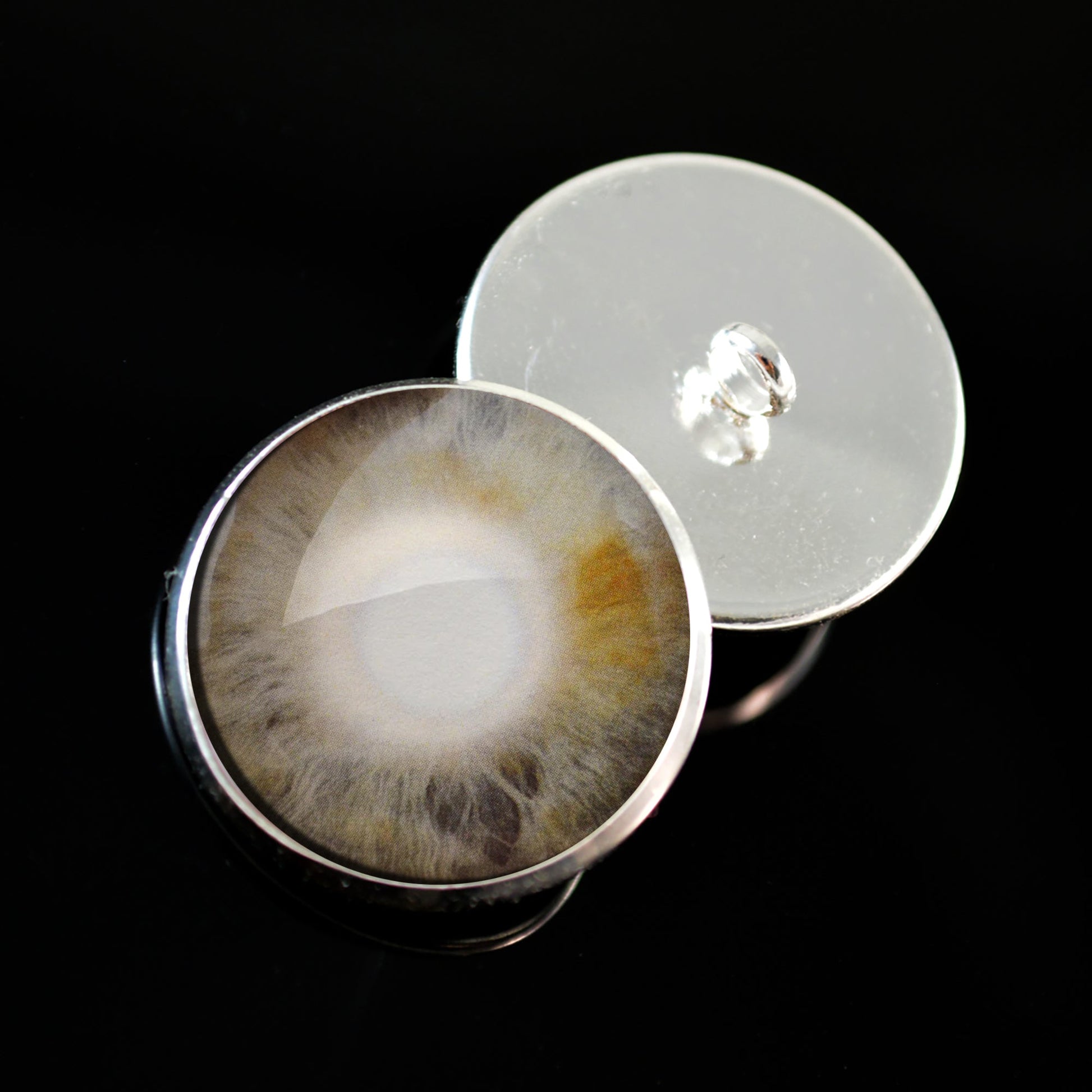These realistic, gray human-style blind eyes will bring depth and eeriness to your spooky crafting project. Colored with shades of gray, burnt tan, and white, these glass eye cabochons are sure to be a showstopper. Sharp and richly shaded colors draw the eye and allow for easy placement on art dolls, jewelry, sculptures, props, cosplay decorations, or anywhere else you can think of!