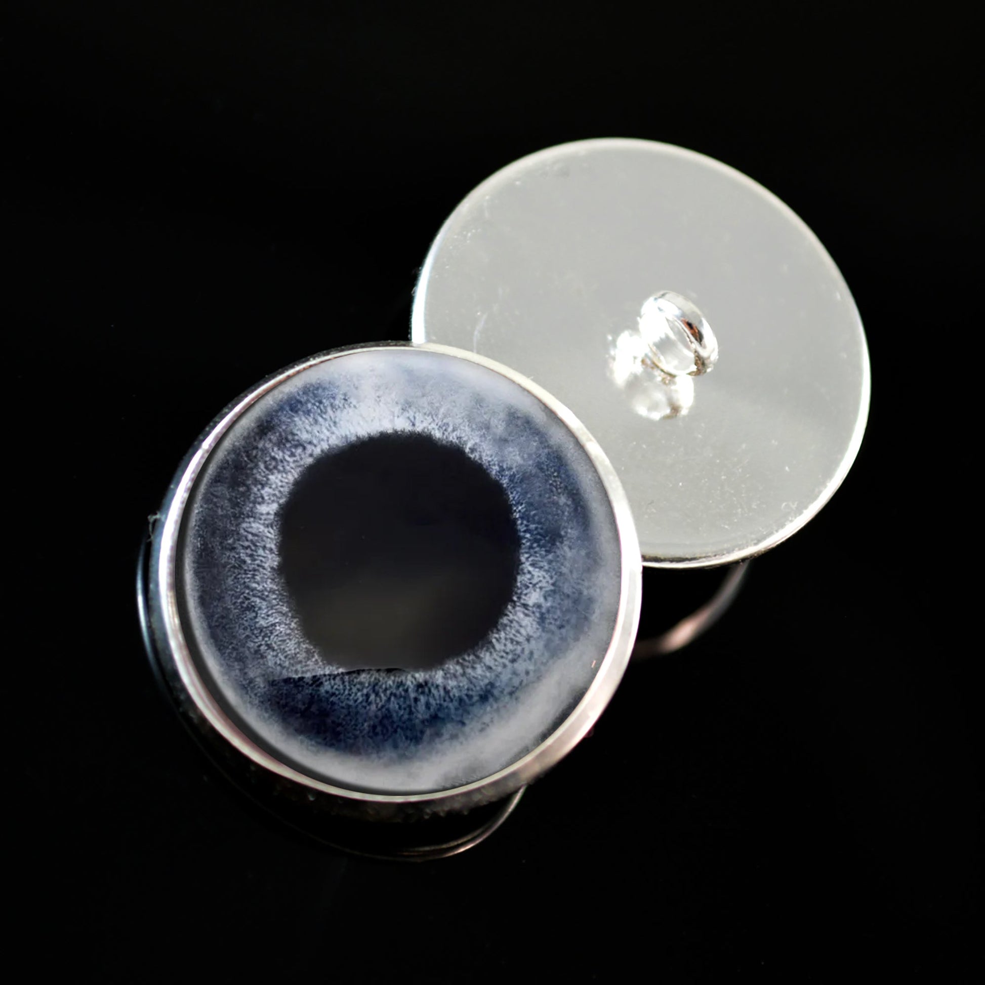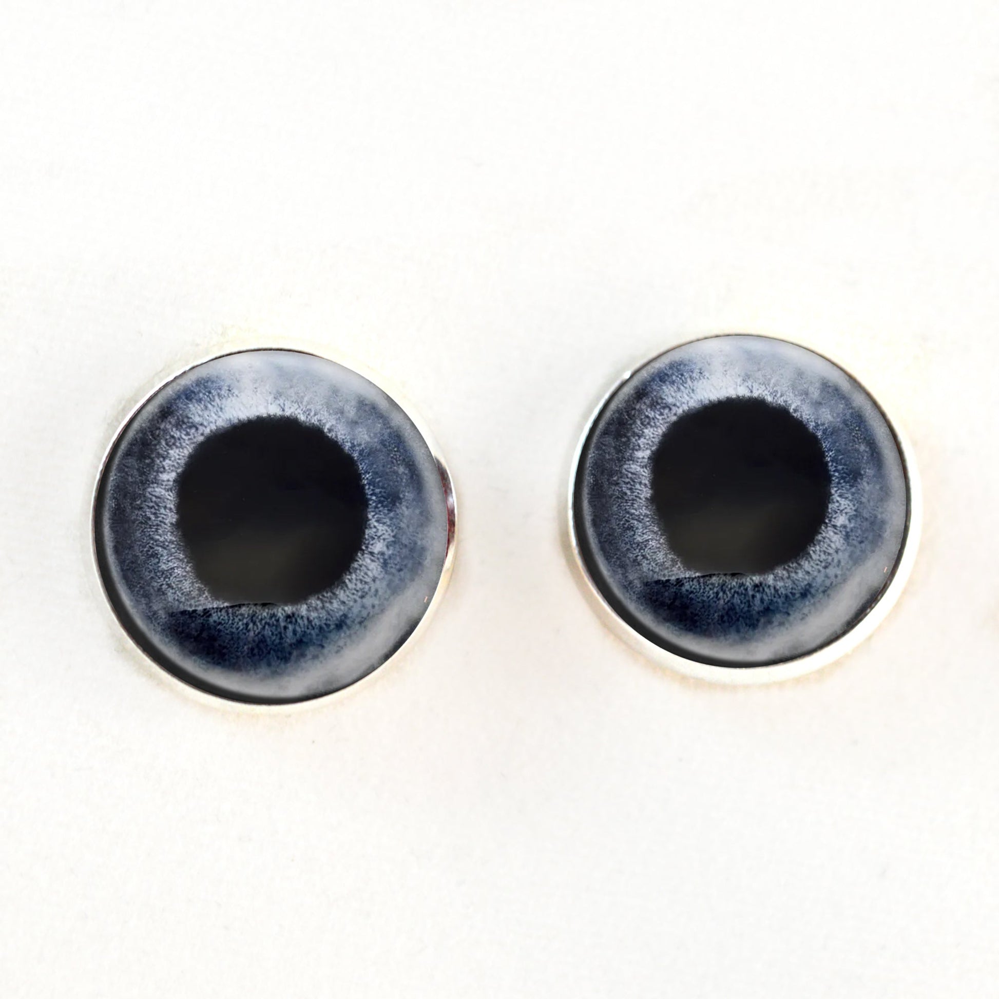 These glass eyes are buttons with a loops on the back of their silver colored metal settings. This pair of glass eyes is perfect for creating your stuffed or crochet animal creature or soft sculpture, or for use in creative jewelry making.