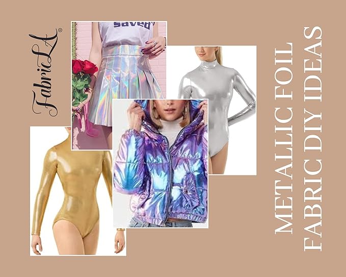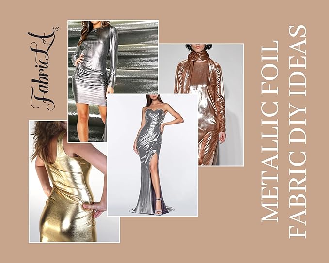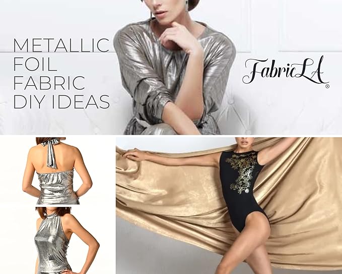Material: 90% Polyester 10% Spandex – The metallic fabric is composed of high-quality fabric with 90% Polyester and 10% Spandex. This perfect blend makes it lustrous, breathable, and durable fabric. It gives a smooth and fine texture to the fabric