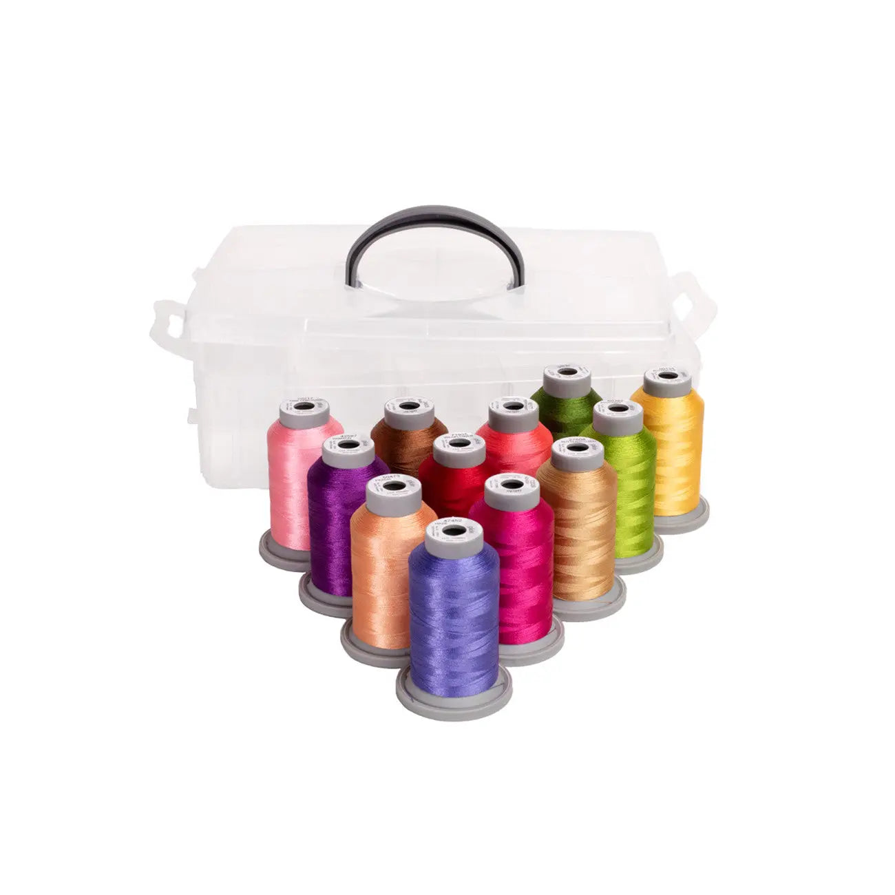 Contains 12 Glide 1,100 yd spools: Bark 24635, Butterscotch 27508, Wildflower 71935, Peppermint 90177, Pink Lemonade 70217, Peach 50473, Buttercup 80134, Avocado 60382, Aloe 60371, Haze 47452,Damson 42587, Azalea 72039