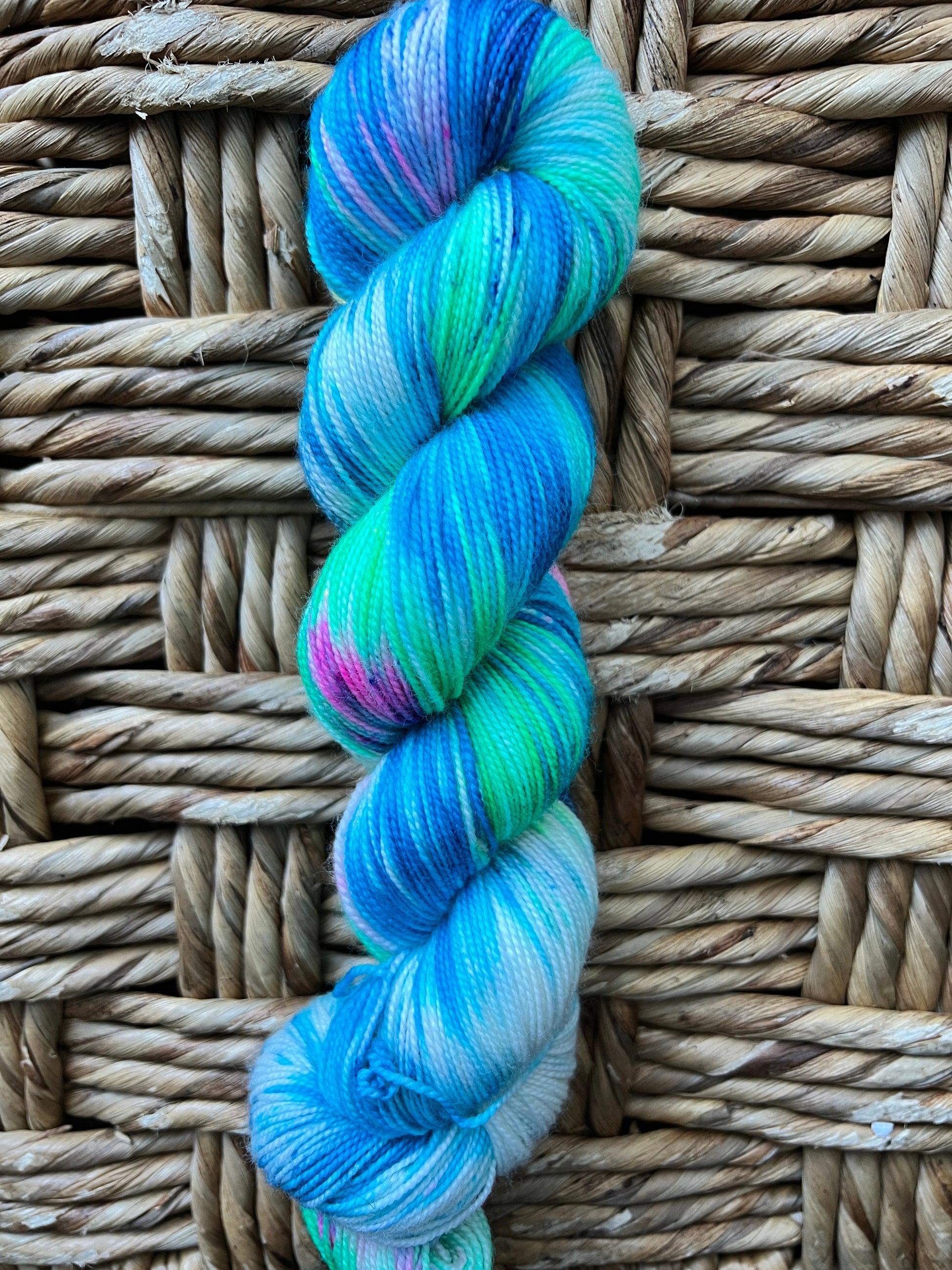 Skeins are dyed to order. There may be slight differences from skein to skein. If you are knitting with more than 1 skein, it is suggested to alternate between skeins to prevent any color pooling. Colors depicted in the pictures are as best represented as possible, however colors can vary slightly from monitor to monitor. All Woolen Women fiber is died with high quality acid dyes. Although adequate washing of the fiber is done prior to reaching your knitting needles- please take caution when first washing fiber or finished projects, as there is a chance bleeding may occur. Is is suggested to wash in a wool wash or a very mild detergent. Lay finished projects flat to dry. If you have any questions or concerns- I am happy to address them so you are nothing but excited about your purchase!