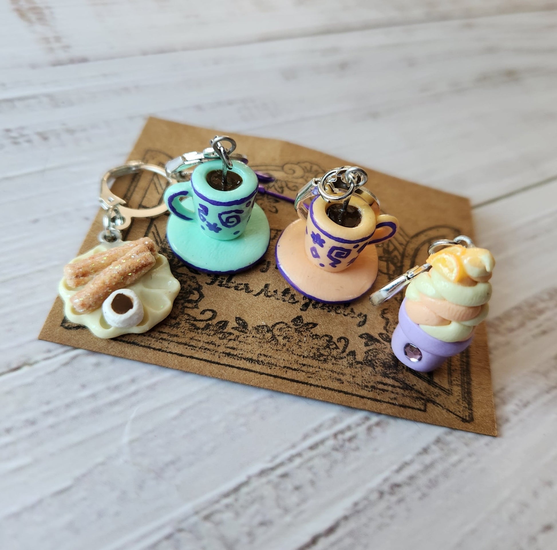 Each trinket is handcrafted using a variety of techniques with needle tools to sculpt these miniatures! Techniques like handpainting, resin art and free hand sculpting. Your trinkets are always made special for you! Lever back hardware allows crochet or knitted use and can be slipped or hooked. Your trinkets should be stored in a hard case or safe space when not in use. Polymer clay is very lightweight and does not pull on your WIP! Decorate your WIPs and enjoy your fiber arts jewelry!