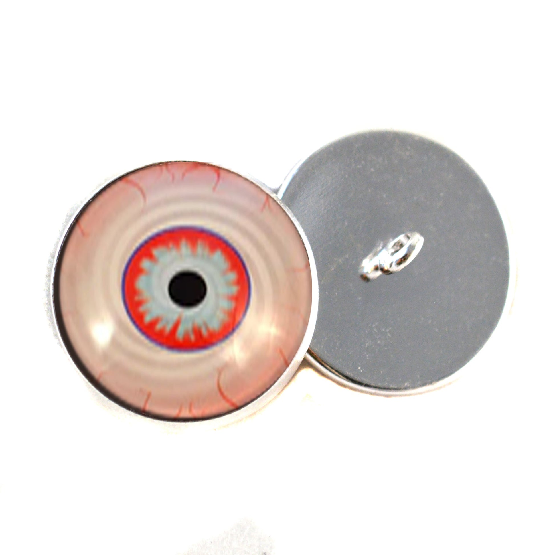 These glass eyes are buttons with a loops on the back of their silver colored metal settings. This pair of glass eyes is perfect for creating your stuffed or crochet animal creature or soft sculpture, or for use in creative jewelry making.