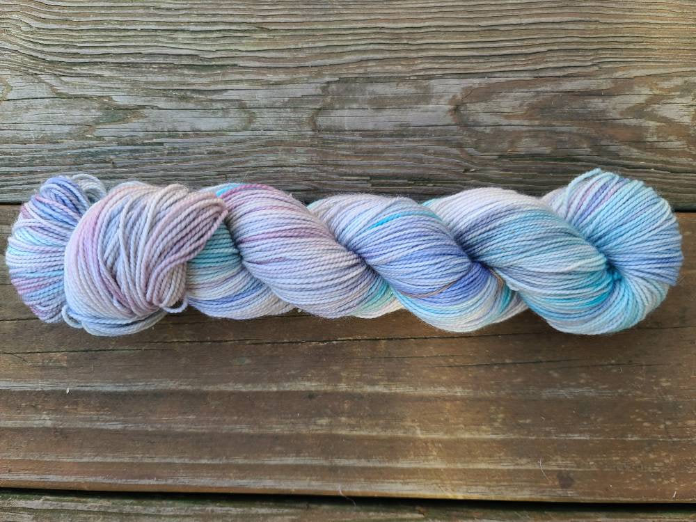 Skeins are dyed to order. There may be slight differences from skein to skein. If you are knitting with more than 1 skein, it is suggested to alternate between skeins to prevent any color pooling. Colors depicted in the pictures are as best represented as possible, however colors can vary slightly from monitor to monitor. All Woolen Women fiber is died with high quality acid dyes. Although adequate washing of the fiber is done prior to reaching your knitting needles- please take caution when first washing fiber or finished projects, as there is a chance bleeding may occur. Is is suggested to wash in a wool wash or a very mild detergent. Lay finished projects flat to dry. If you have any questions or concerns- I am happy to address them so you are nothing but excited about your purchase!