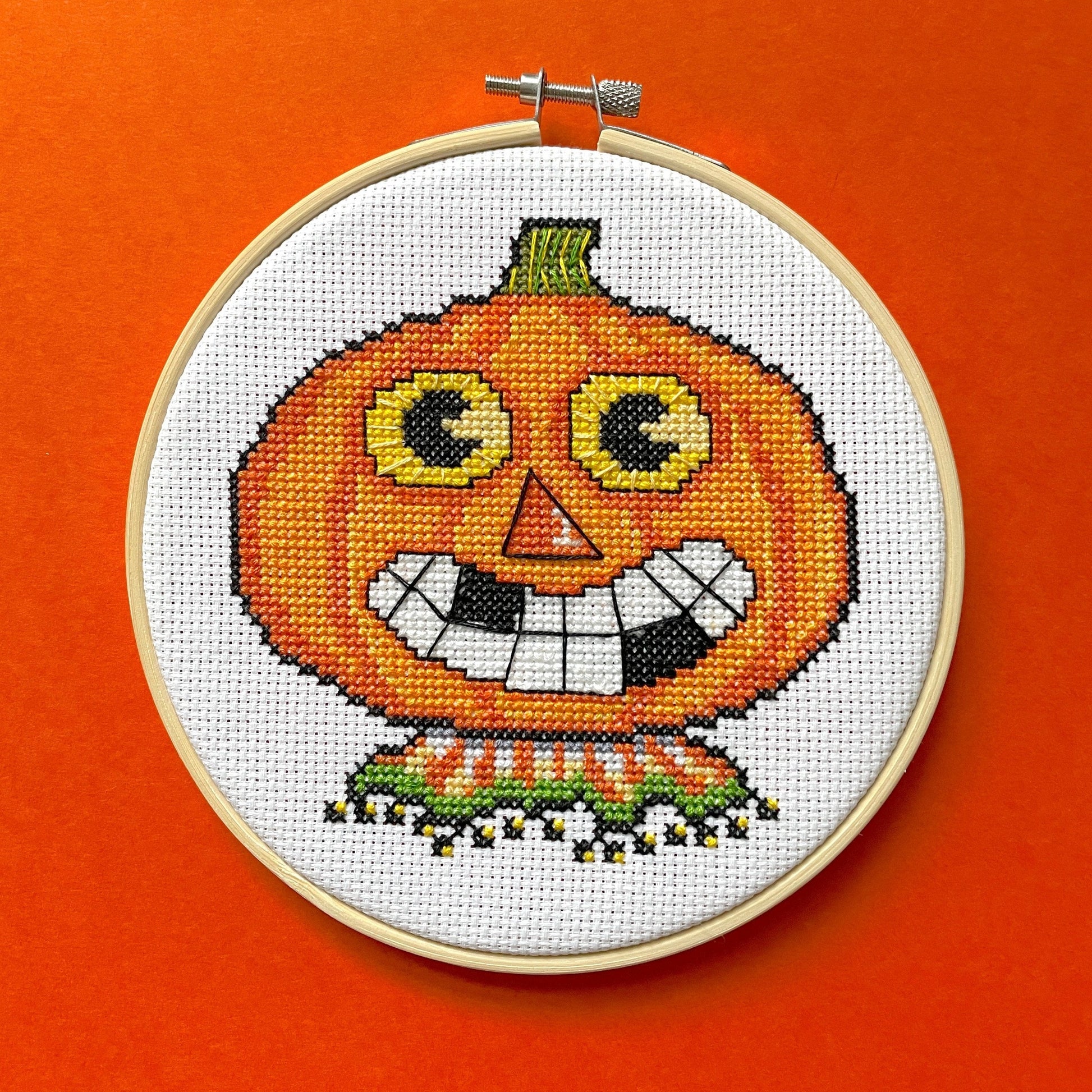 Celebrate the cozy charm of fall with the Pumpkin Cross Stitch Kit by Spot Colors x Mary Engelbreit! This kit features a beautifully designed pumpkin, perfect for adding a festive touch to your autumn or Halloween décor. Whether you're an experienced stitcher or a beginner, this kit comes with everything you need to create a timeless seasonal piece.