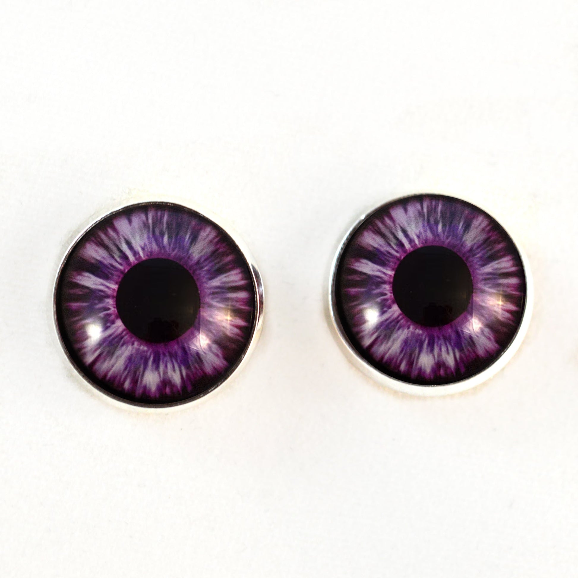 These dazzling, transfixing purple succubus demon eyes with piercing irises will make your spooky projects POP. Colored with shades of purple these cabochons are sure to be a showstopper. Sharp and richly shaded colors draw the eye and allow for easy placement on art dolls, jewelry, sculptures, props, cosplay decorations, or anywhere else you can think of!