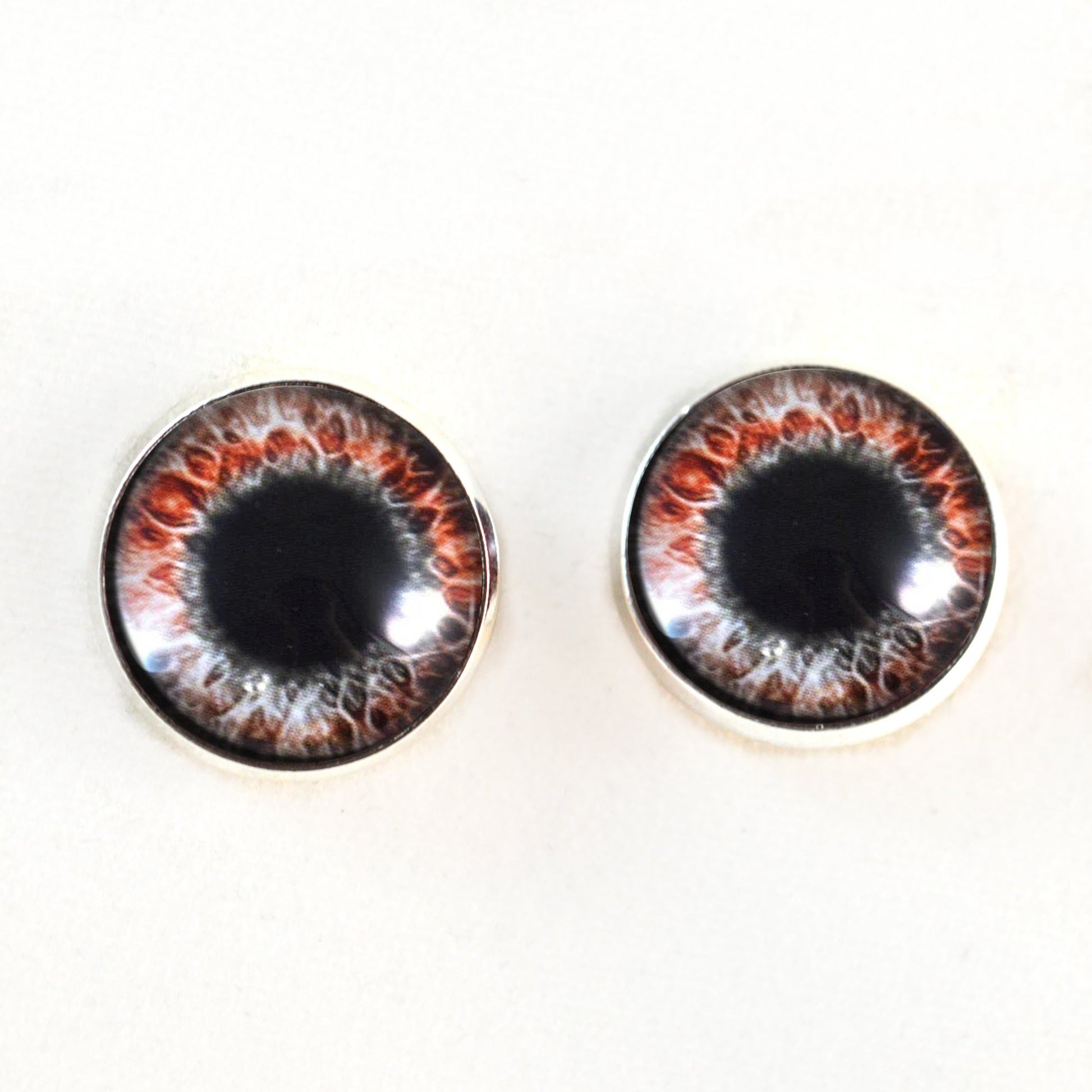 These glass eyes are buttons with a loop on the back of their silver-colored metal settings. This pair of glass eyes is perfect for creating your stuffed or crochet animal creature or soft sculpture, or for use in creative jewelry making.