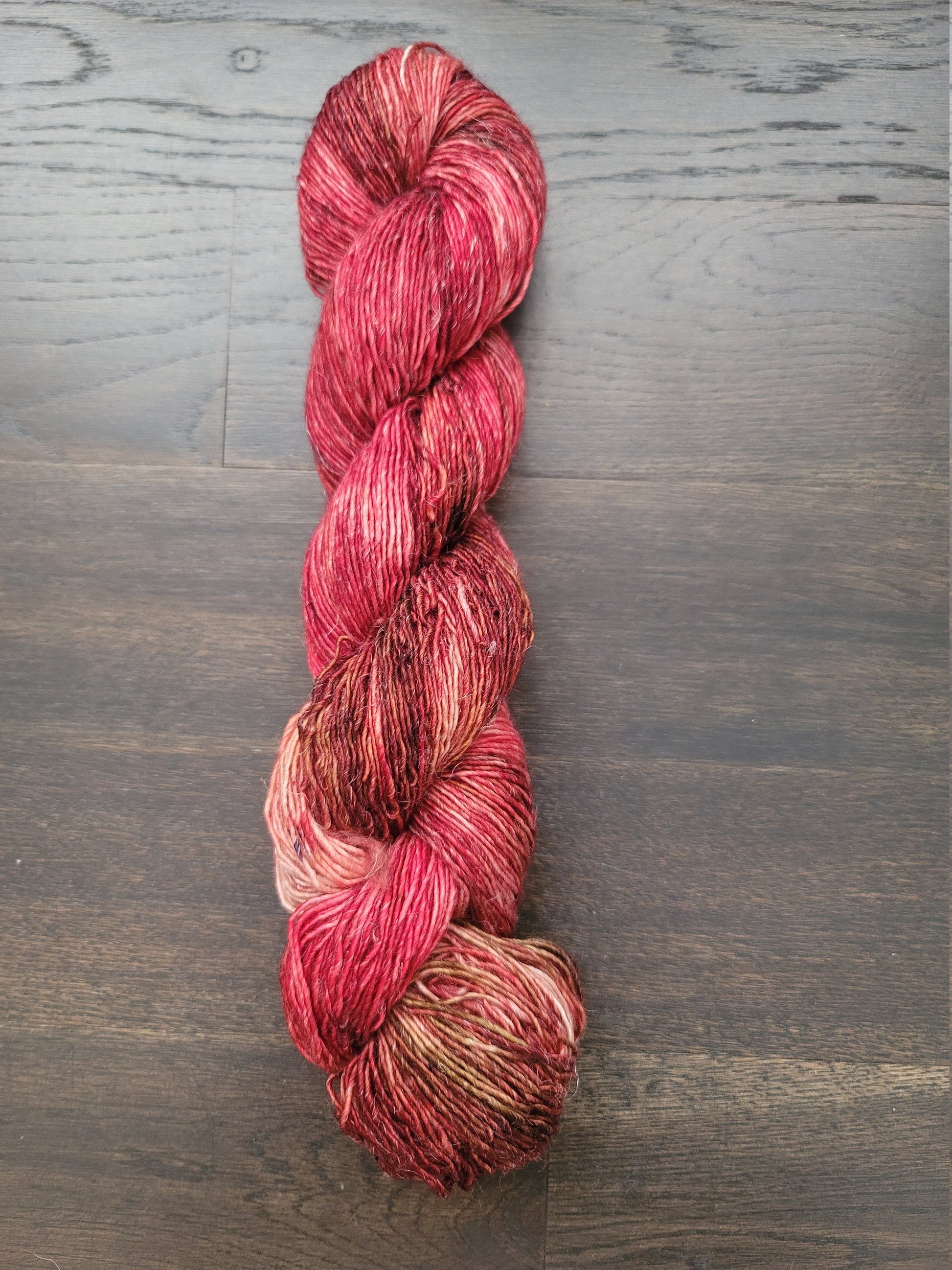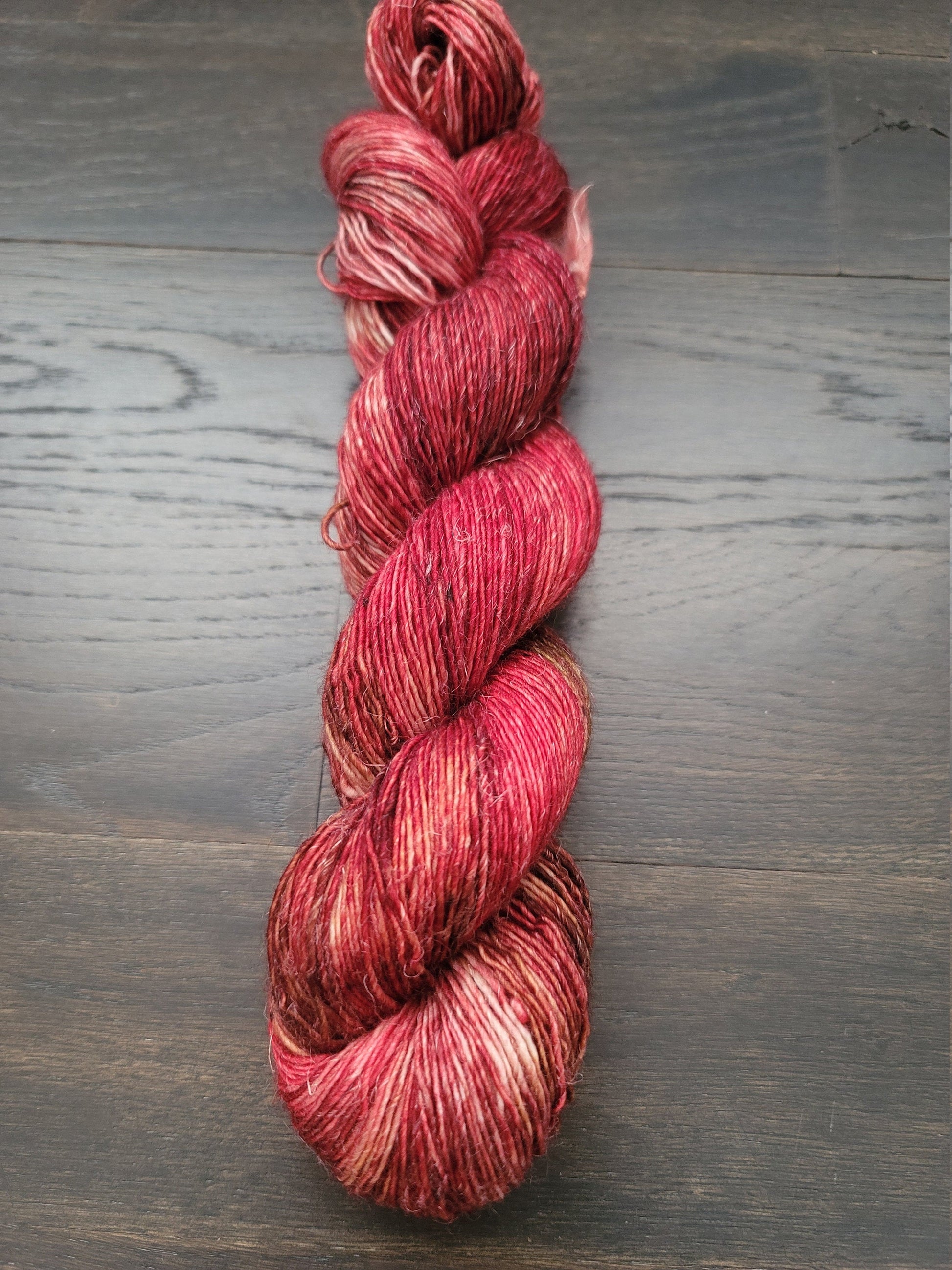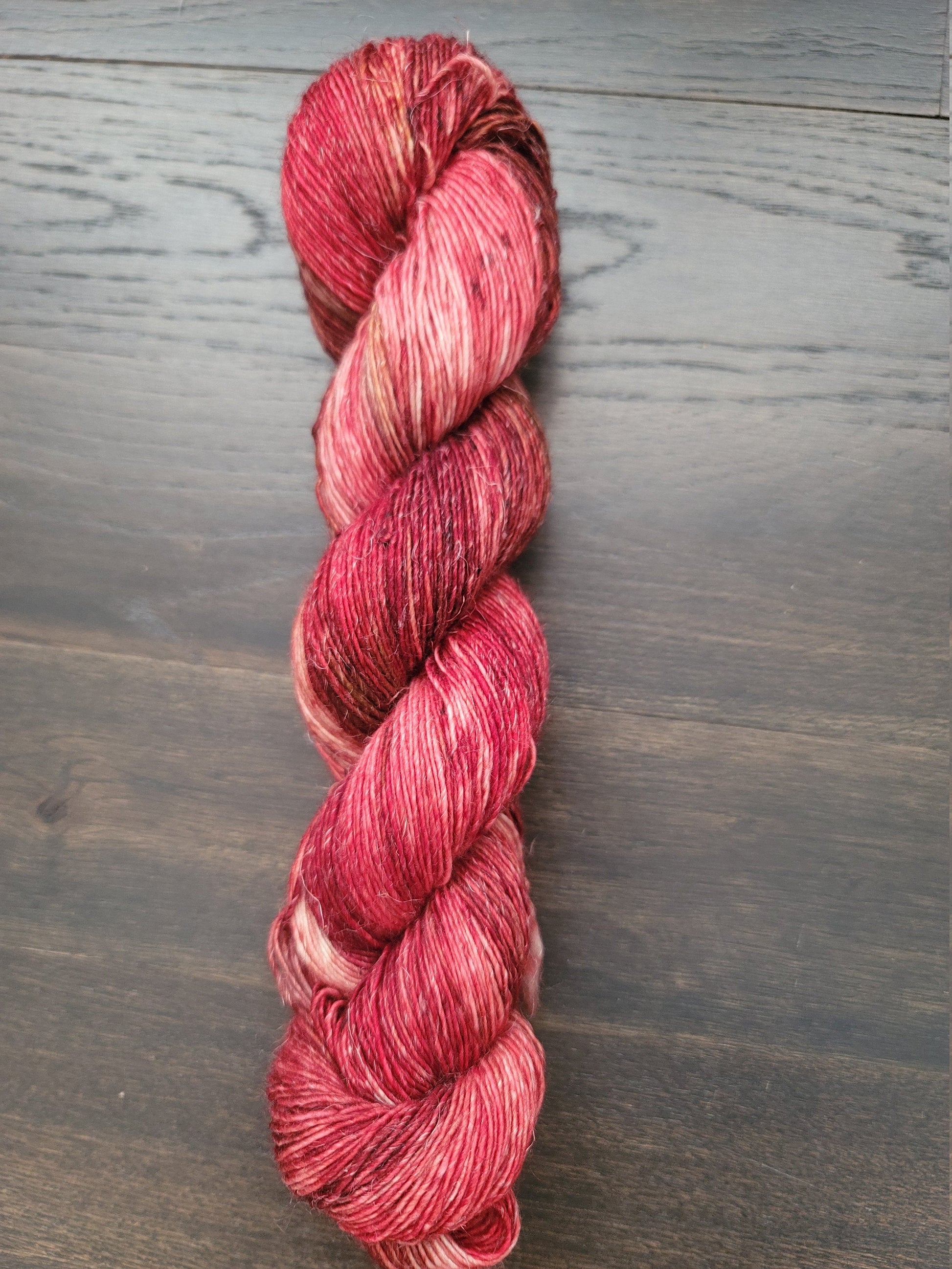 Skeins are dyed to order. There may be slight differences from skein to skein. If you are knitting with more than 1 skein, it is suggested to alternate between skeins to prevent any color pooling. Colors depicted in the pictures are as best represented as possible, however colors can vary slightly from monitor to monitor.