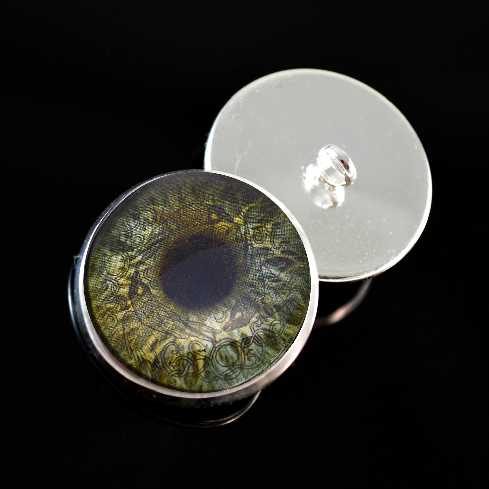 Sage Green Viking Raven Sew-On Buttons Glass Eyes