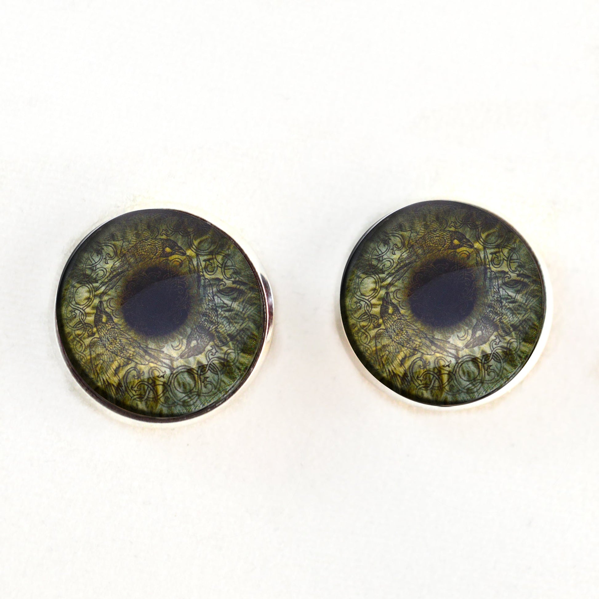 These glass eye designs feature vividly colored and detailed Celtic-inspired irises. At the center of each eye is a round, realistic eye pupil decorated with swirling Celtic-style ravings and ornamentation.