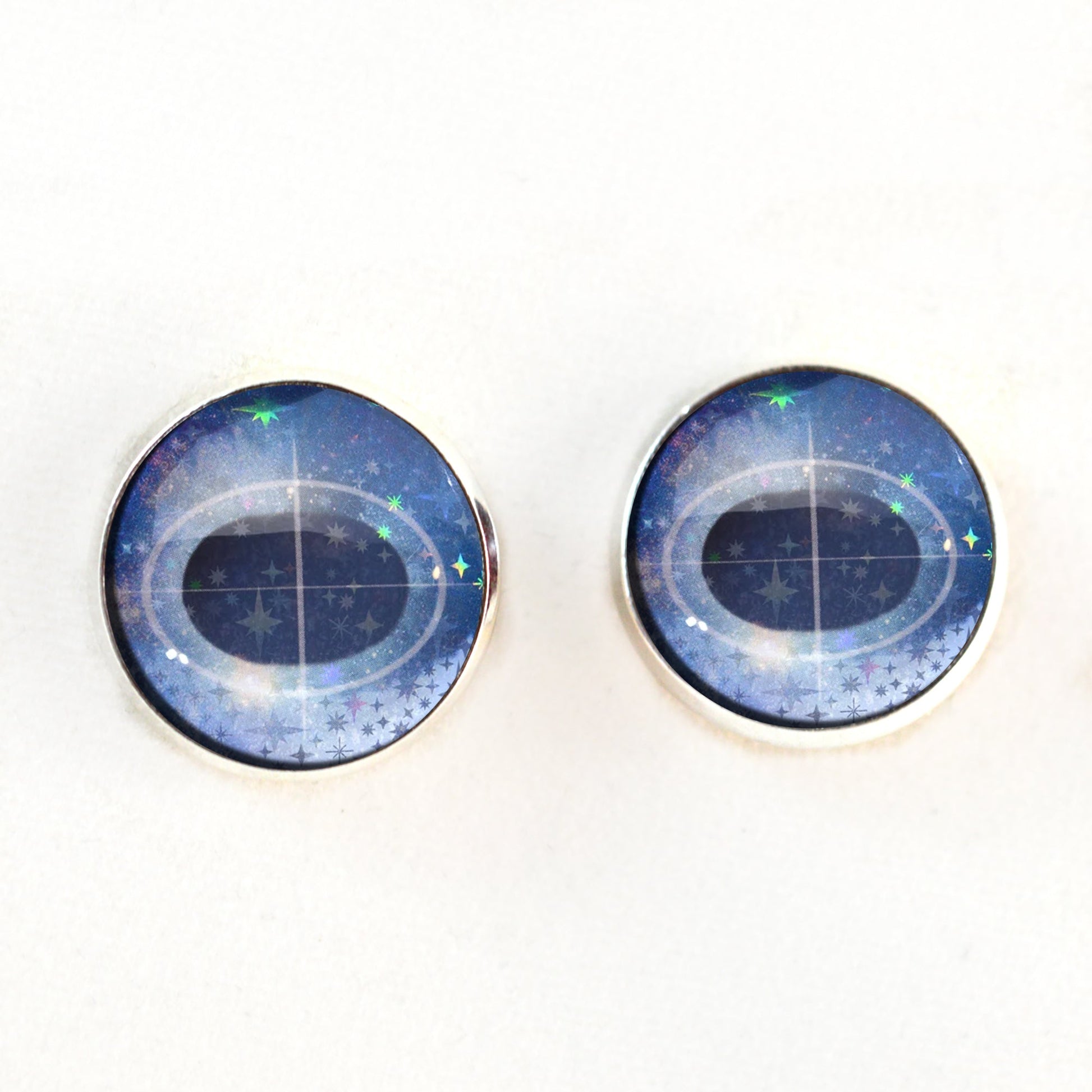 These sew in unicorn glass eyes engage onlookers with their realistically detailed iris design and added layer of twinkling iridescent shimmer of stars so that a rainbow of shimmering color splashes across the eye design as it catches and moves with the light. These eyes are perfectly suited for soft sculpture doll making.