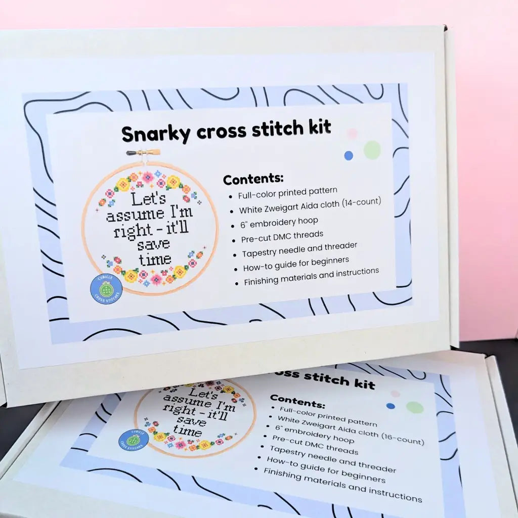 Let's Assume I'm Right - Snarky Floral Cross Stitch Kit by Room for Calm